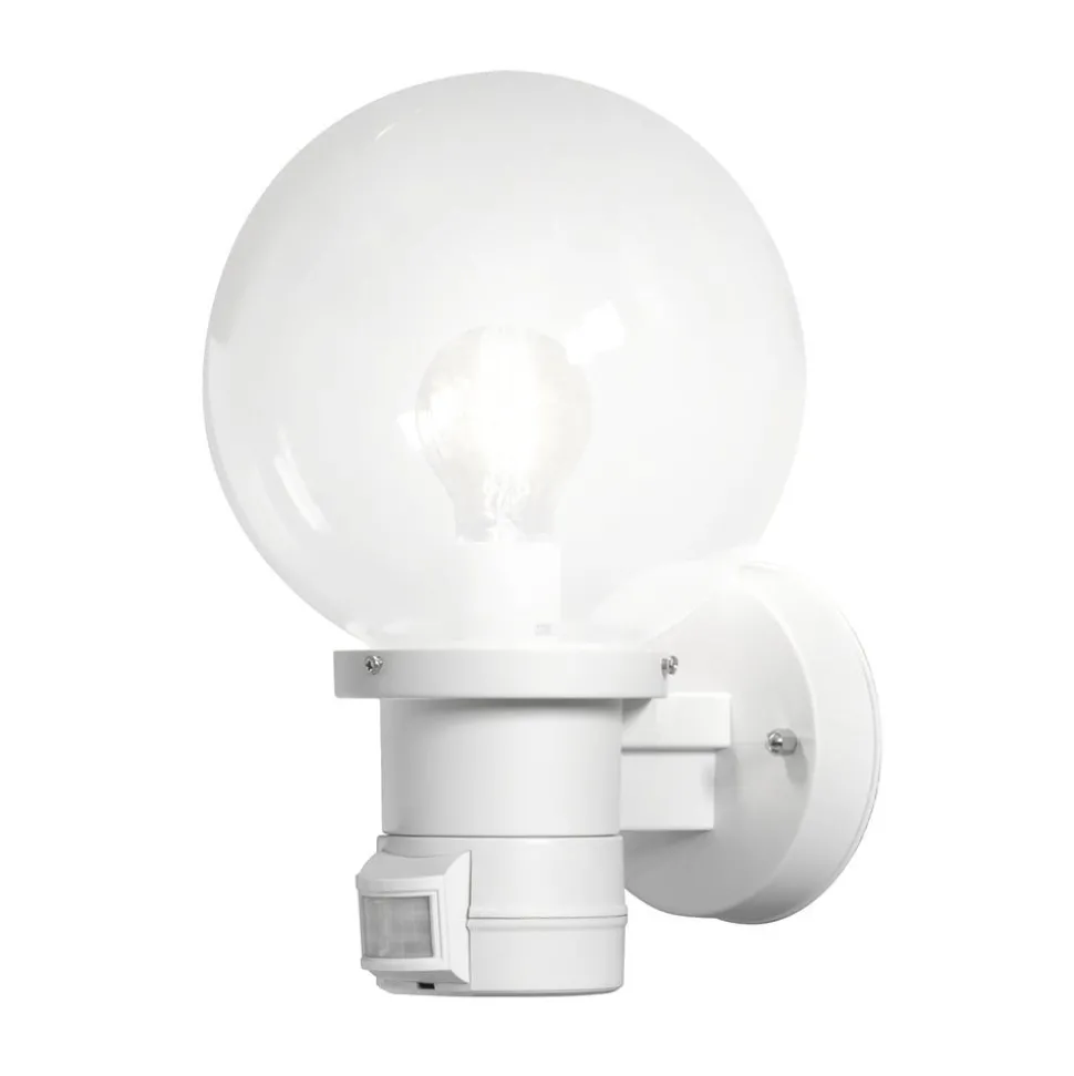 Utendørsvegglampen NEMI med stor akrylglasskule og sensor