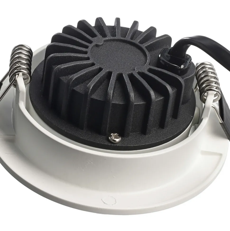 Dione LED-takinnfellingsspotlight – plassbesparende takket være lav innbyggingsdybdeDione LED-takinnfellingsspotlight trenger bare et takhjørne på 25 millimeter for montering, da den har en spesielt lav innbyggingsdybde. Tilkoblingsboksen og den dimbare LED-strømforsyningsenheten er inkludert i leveringsomfanget og kan også plasseres i takutsparingen på grunn av den kompakte konstruksjonen. Komponentene til Dione er alle forhåndsmontert, noe som muliggjør rask installasjon uten verktøy. 3-polet gjennomgående kabling er også mulig takket være koblingsboksen med pluggbare klemmer. Dette gjør Dione til den optimale løsningen for ettermontering ved renovering eller for førstegangsinstallasjon når installasjonsplassen er begrenset.spotten kan dreies opp til 30°.- Eksternt dimbar via faseskjæring eller faseskjæringsdimmer