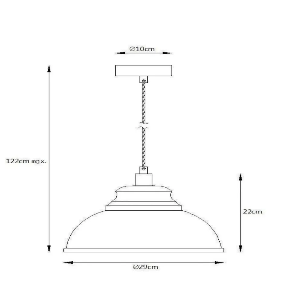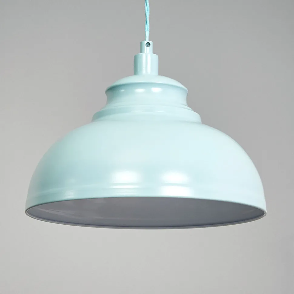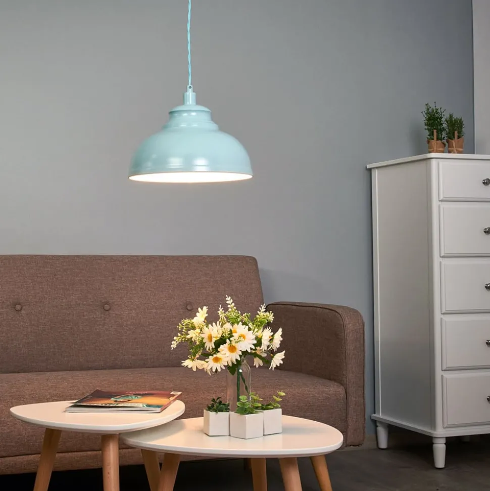 Blå Isla pendellampe i metall Hyggelig belysning på bordet eller benken på kjøkkenet eller i spisestuen – Isla pendellampe i metall gjør det mulig. Metallskjermen lar lyset kun skinne nedover. Den hvite innvendige overflaten forsterker lyseffekten. Den blå, halvblanke overflaten på skjermen gir Isla pendellampe et litt nostalgisk preg.