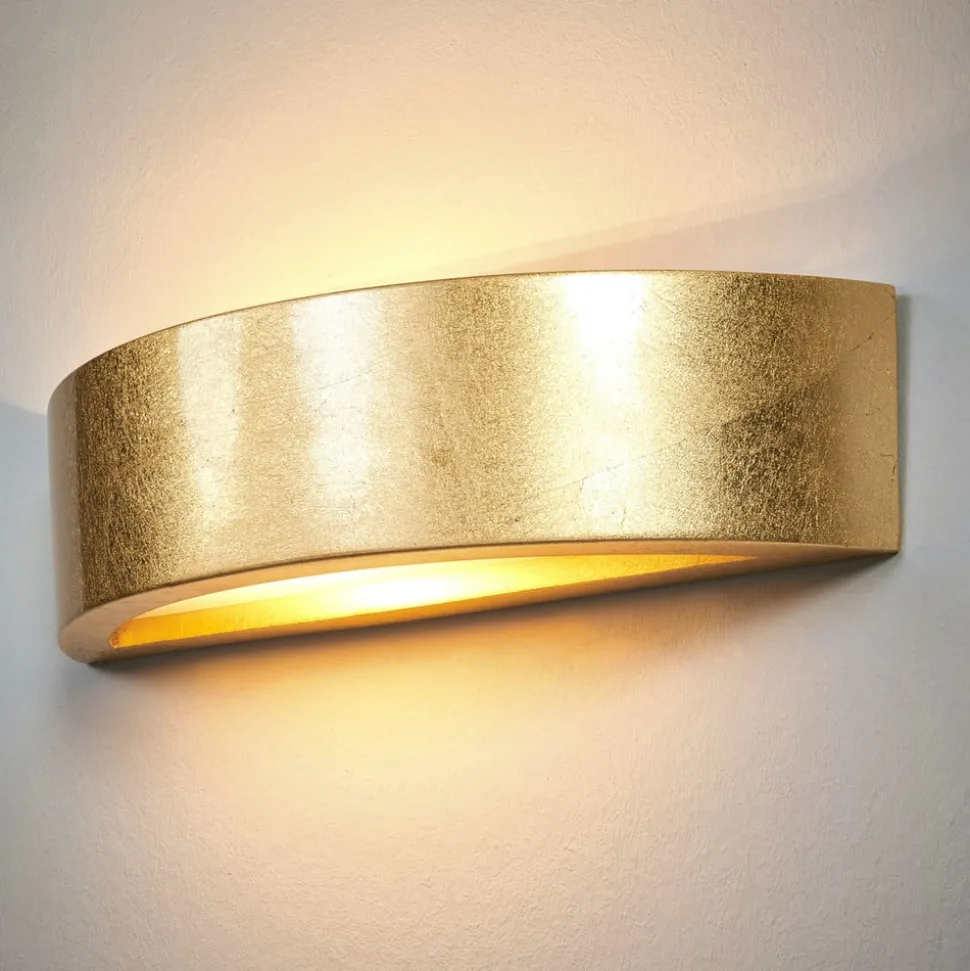 Et flott dekorasjonsobjekt for oppholdsrom: vegglampen Jasin med elegant gullfinish