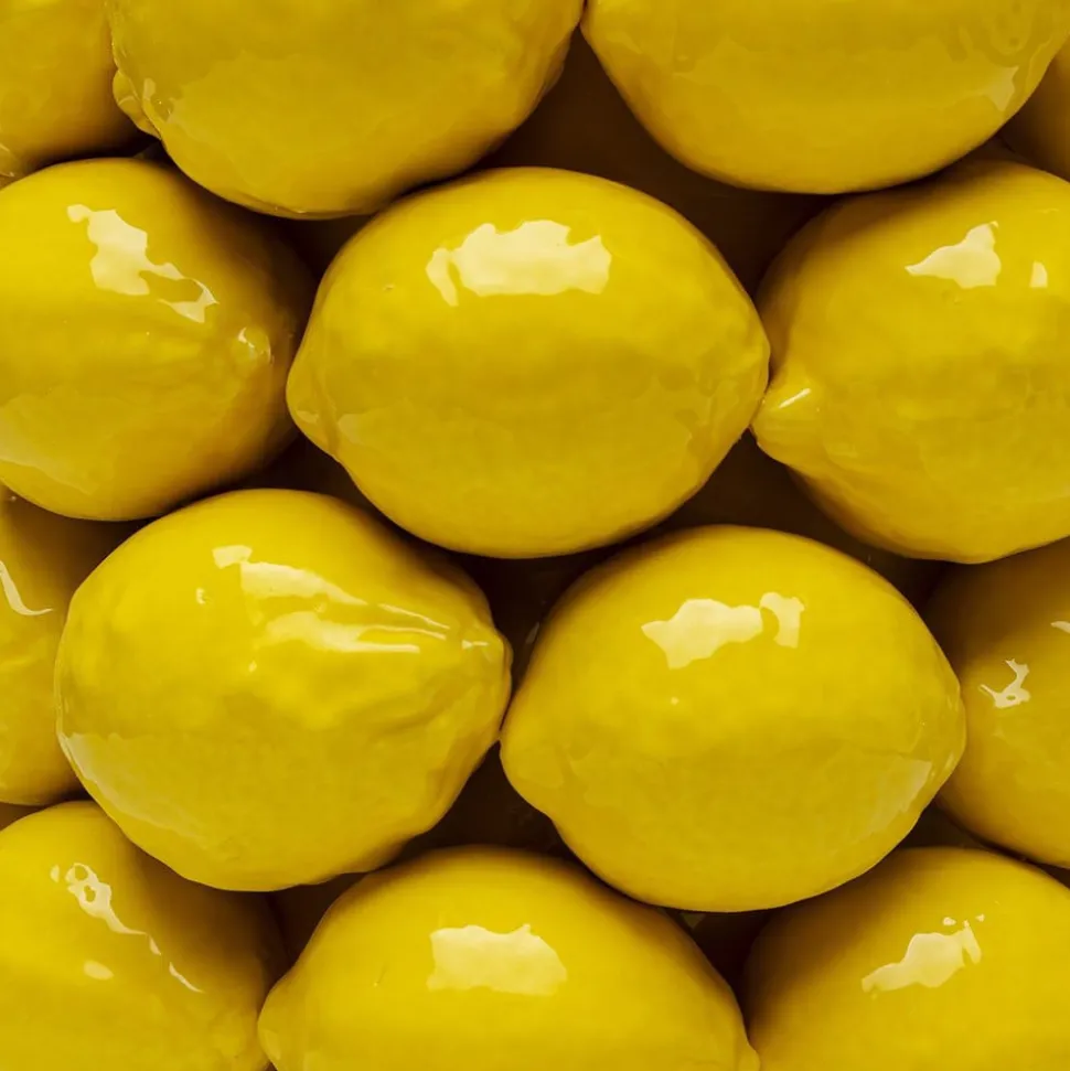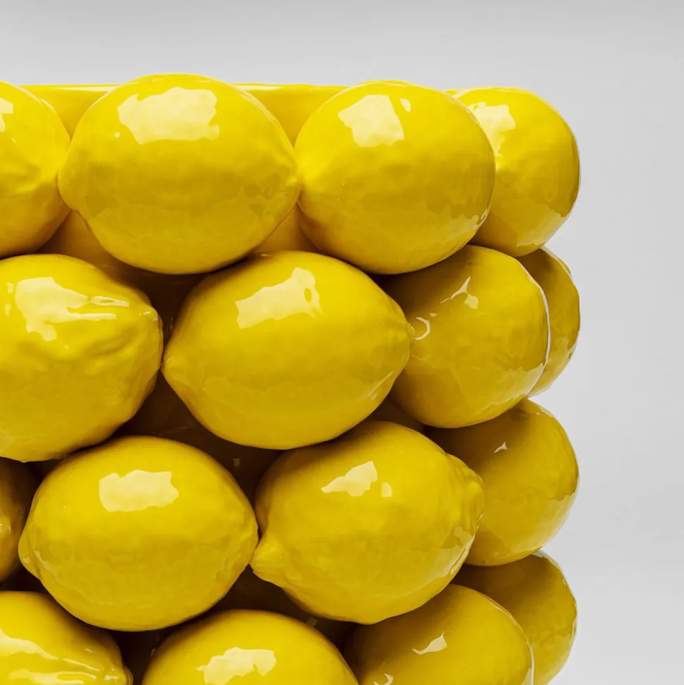 Lemon Juice-vase i sylinderform med sitroner rundt hele vasen Lemon Juice-vasen i porselen er vår oppskrift mot den grå, ensformige boligen. Den gule fargen er en skikkelig humørspreder og gir et friskt preg og en dekorativ fargeklatt til ethvert rom. Vasen er håndlaget i porselen og glasert, noe som gjør den enkel å rengjøre. Hver vase er unik.