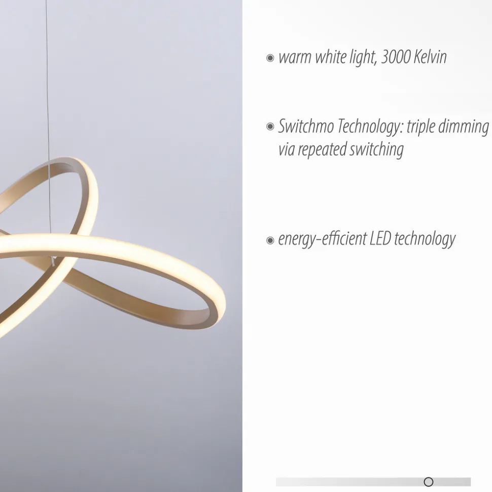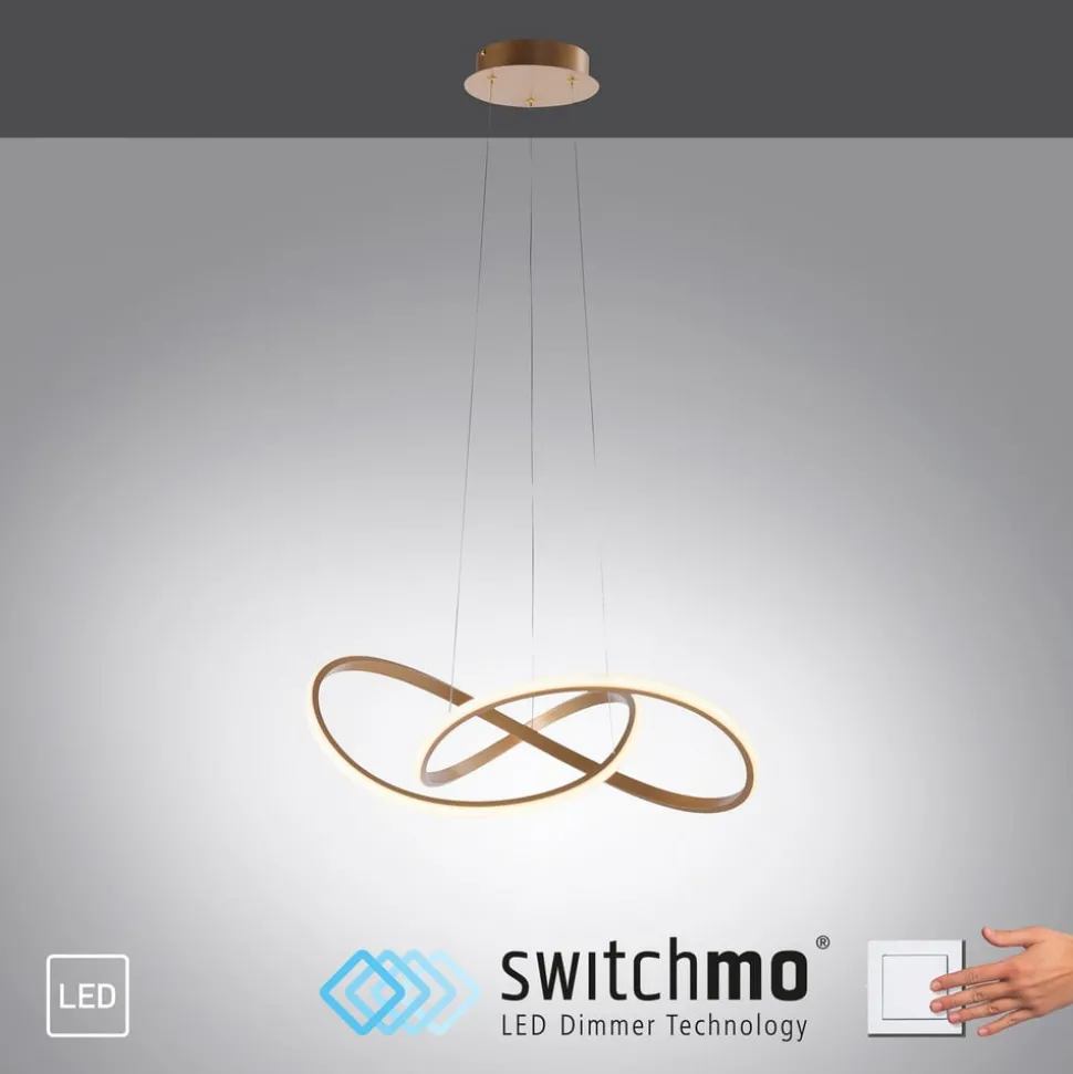 LED-hengelampe Maria, dimbar i 3 trinn, messing