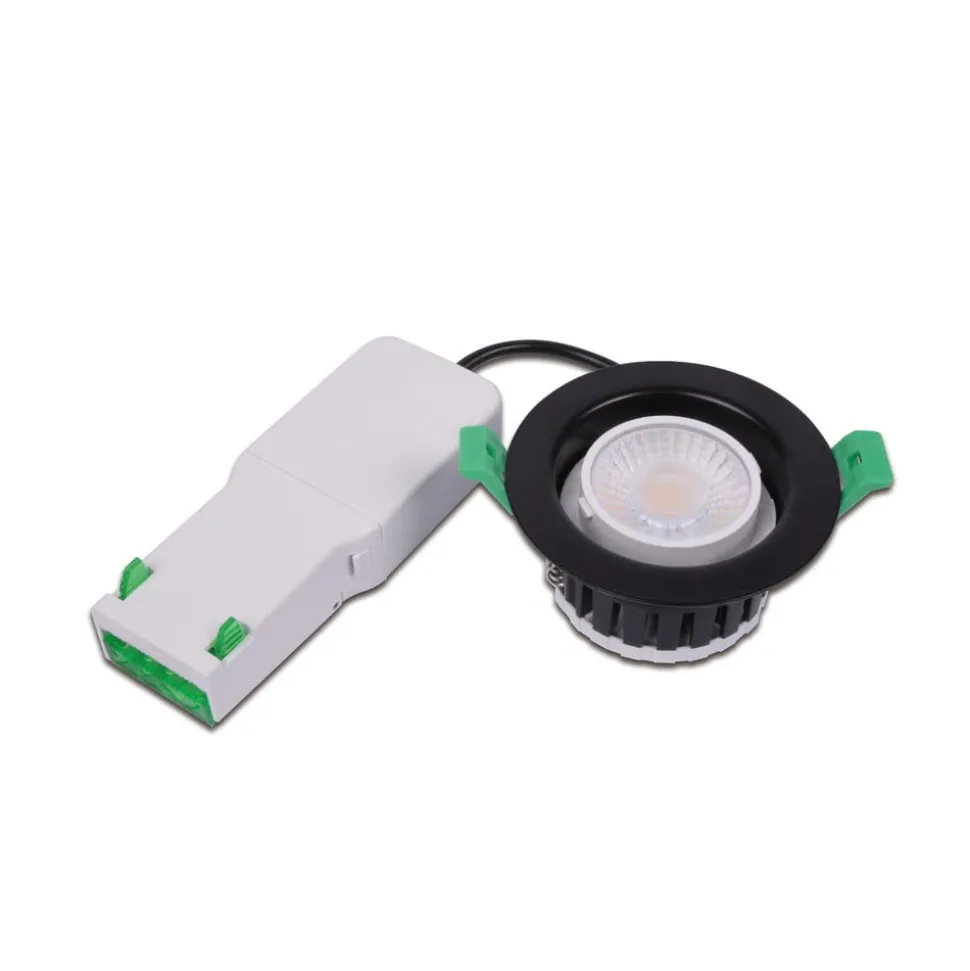 Eco R 68 rund LED-spotlight for innfelt takmontering – IP65, CCT-funksjon, dimbar Eco R 68 er en allsidig LED-spotlight for innfelt taklampe for boliger, salonger og kommersielle områder. Takket være den vannbeskyttede konstruksjonen ved installasjon kan den innfelte spotlighten også brukes på bad og vaskerom. En rund dekorring (medfølger) er plassert foran metallhuset som en nedre avslutning – Kapslingsgrad: IP68 – Før installasjon: effekt justerbar i to trinn (5 W / 8 W), lysstyrke justerbar i fire trinn (varmhvit til dagslys) – LED-driver medfølger – Eksternt dimbar; anbefales: Busch 6523U-102, Jung 266GDE, GIRA 117600/I03 – Mulighet for gjennomgående kabling – Også egnet for møbelinstallasjon