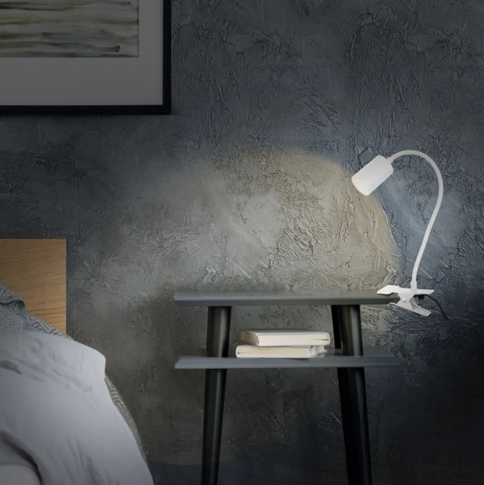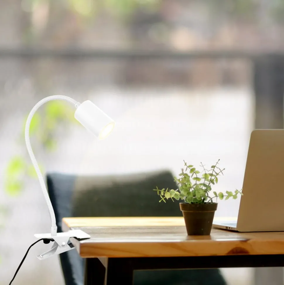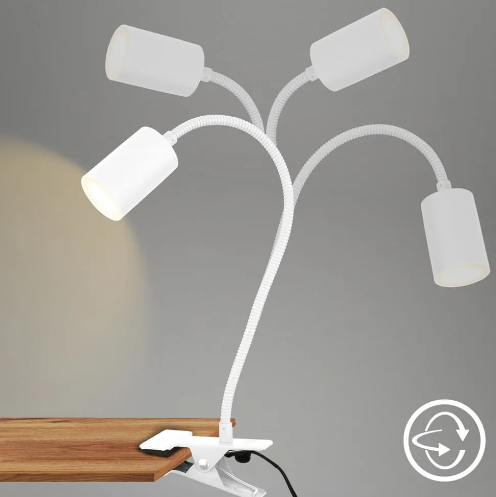 LED-klemmelampe Fleks, hvit, fleksibel, metall