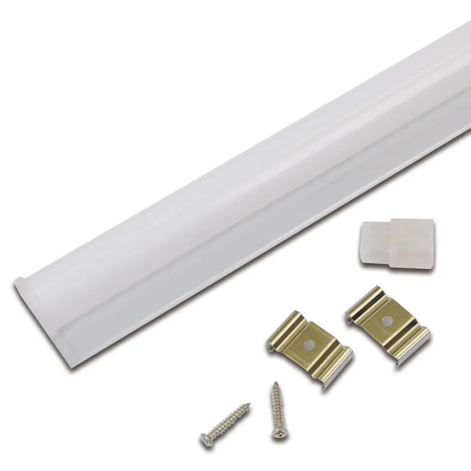 Eco-Lite F HO er en lyslist for overflatemontering, som med sin meget brede stråle er ideell for belysning i hyller, skap, skjermer og arbeidsflater i tørre innendørsområder. Takket være de små, stive kontaktene kan flere lys kombineres med minimal avstand. Festingen gjøres raskt og enkelt med de medfølgende klippene og skruene. En passende plugg med passende utgang må kjøpes separat for tilkobling til stikkontakt (se tilbehør).