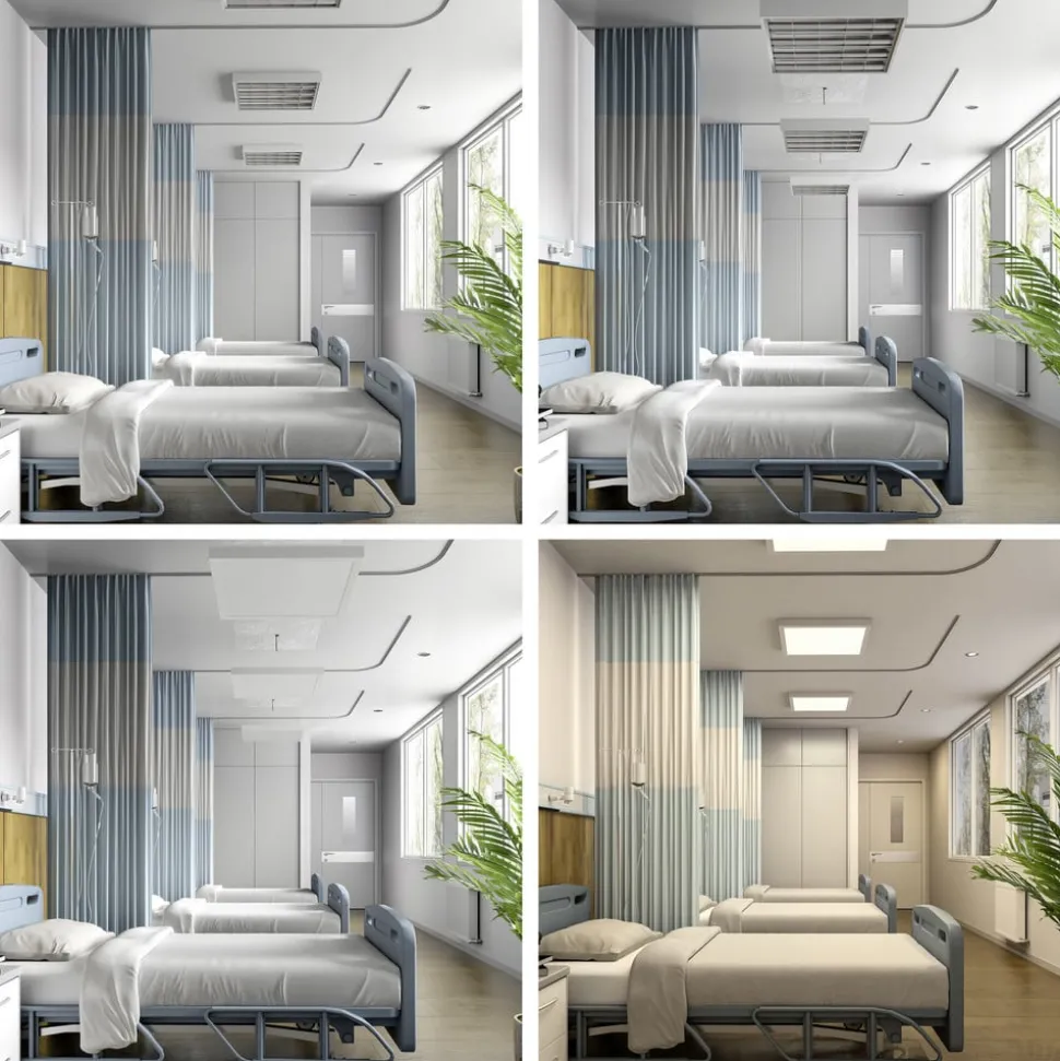 PRO OFFICE SANO kantet LED-panel for takmontering – med CCT-bryter, dimbar PRO OFFICE SANO LED-panel med hvit, rektangulær aluminiumsramme og mikroprismatisk avskjerming er ideelt for arbeids- og allmennbelysning i kontorer. Takket være svært god avblending, ekstern dimbarhet, valgbar lysfarge og ukomplisert installasjon er PRO OFFICE SANO panelet spesielt allsidig – Oppussingsløsning for T5 / T8 rasterlamper – Ingen overmaling nødvendig takket være tildekking av gammel installasjon – Enkel installasjon takket være plug-in-tilkobling, sikkerhetskabler og monteringsbrakett – Valgbar lysfarge før idriftsettelse: 3.000 K / 4 000 K – Eksternt dimbar (forkantfasestyring, bakkantfasestyring) – Nødstrømkompatibel [176-280V/DC EOFI: 95 %] – Egnet for skjermarbeidsplasser i henhold til EN 12464-1 BAP65 [L65=3000cd/m²]
