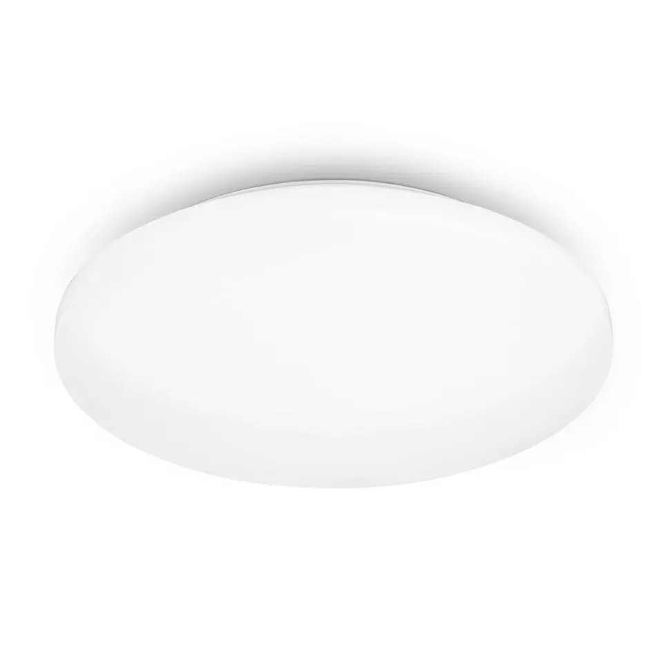 Rund LED-taklampe Case for varmhvit allmennbelysning Case taklampe er designet i en diskret og nøytral rund form i hvit plast, og smelter uanstrengt inn i nesten alle miljøer. Takket være sprutbeskyttelsen (IP44) kan LED-taklampen også brukes på badet. De integrerte LED-lampene gir et varmhvitt lys som spres bredt i omgivelsene.