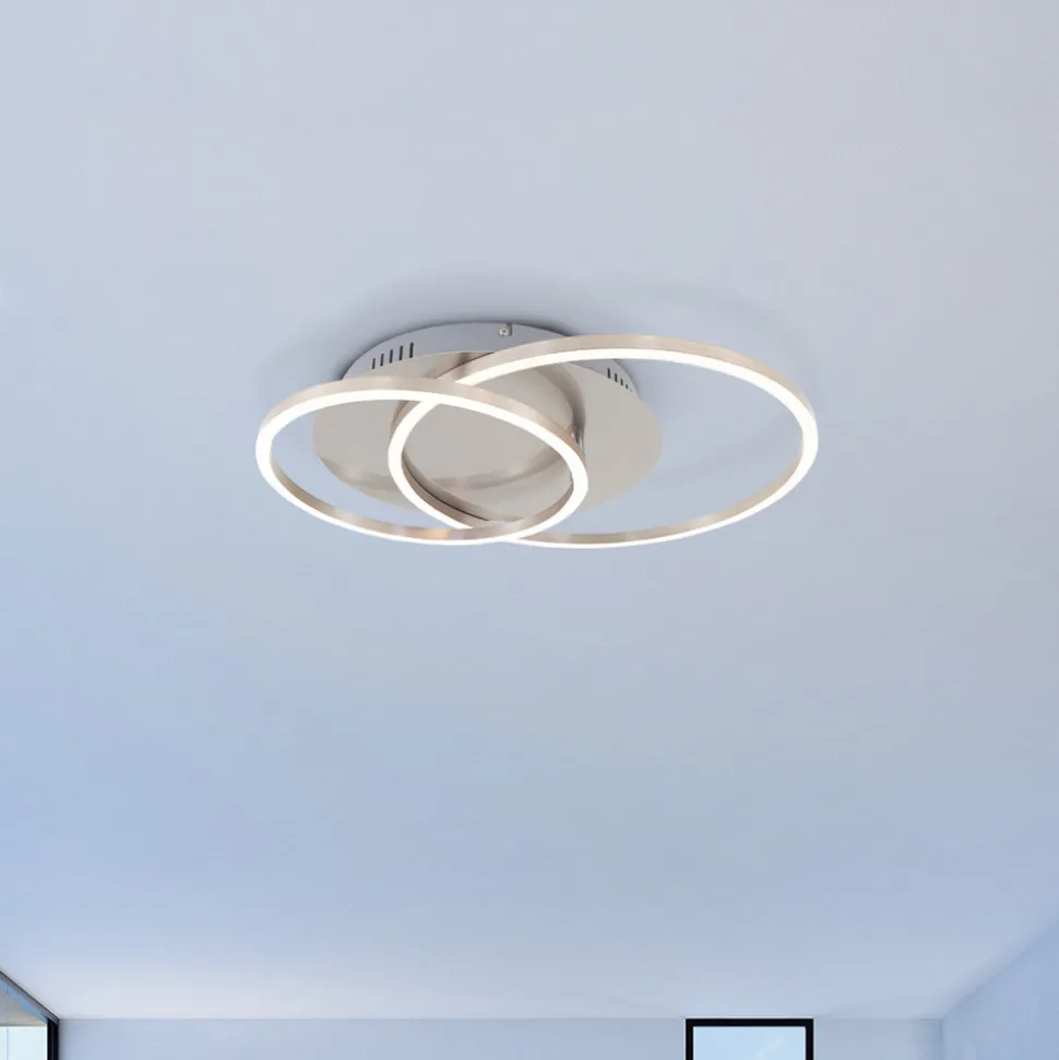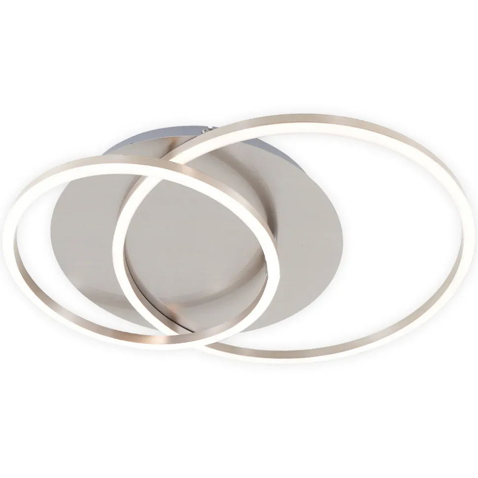 Frames LED-taklampe består av to store ringer som er forskjøvet oppå hverandre og utstyrt med lysdioder. Armaturen kan generere et høyt lysnivå, slik at større rom også kan finne riktig belysning. Om nødvendig har du muligheten til å justere lysstyrken trinnvis ved hjelp av veggbryteren. taklampe er med sin design egnet til bruk i moderne oppholdsrom.