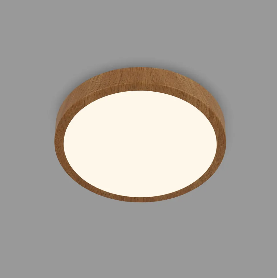 Flat Runa Wood LED-taklampe med en trefarget metallramme