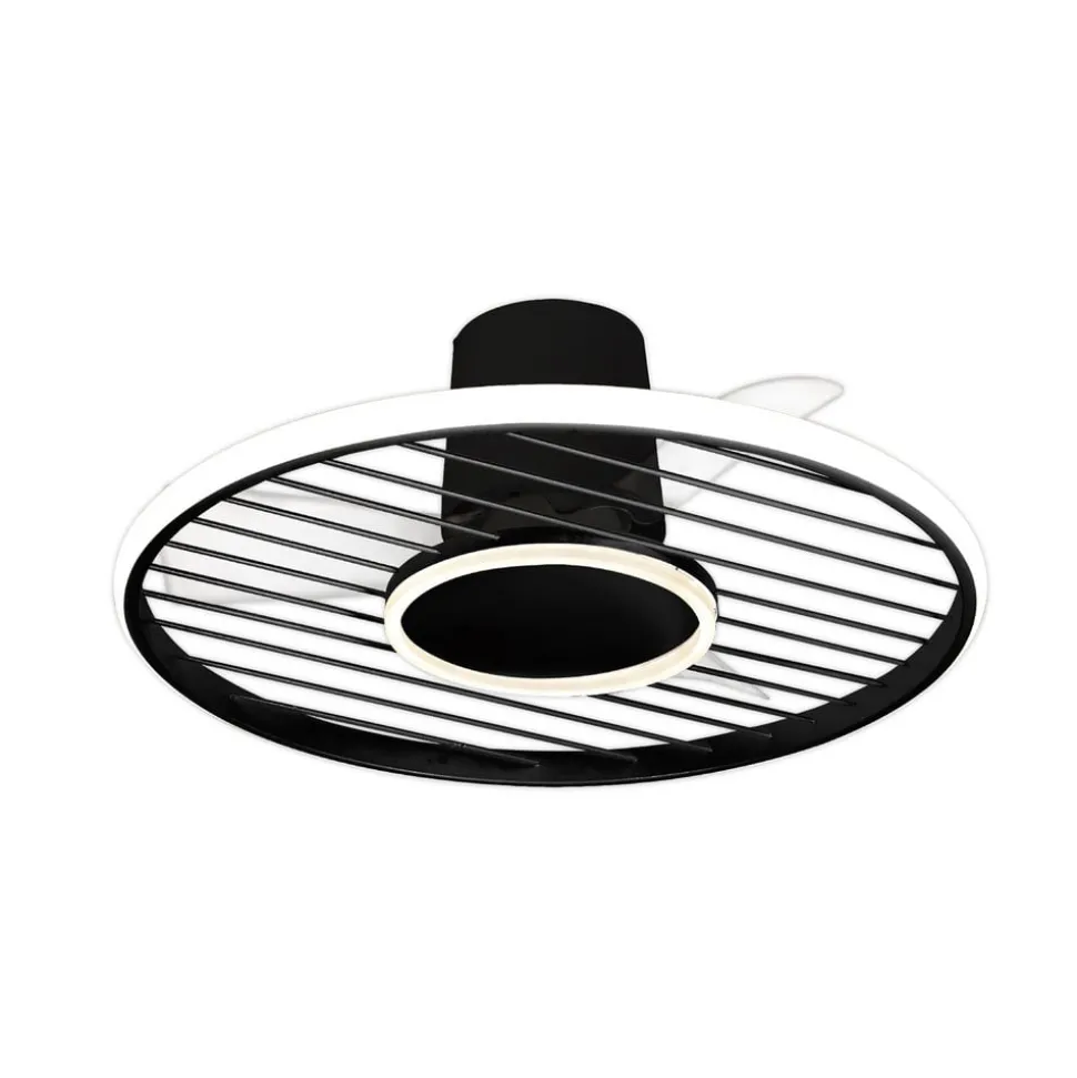 LED-takviften Soho kombinerer en forfriskende luftstrøm med moderne generell belysning. De tre vingene i gjennomsiktig plast ligger over en ring, hvis ytre side er utstyrt med LED-er bak et satinert deksel. I tillegg kommer en ekstra, liten LED-ring på undersiden i midten. Fargetemperatur og lysstyrke kan reguleres etter behov. Betjeningen skjer med den medfølgende fjernkontrollen.