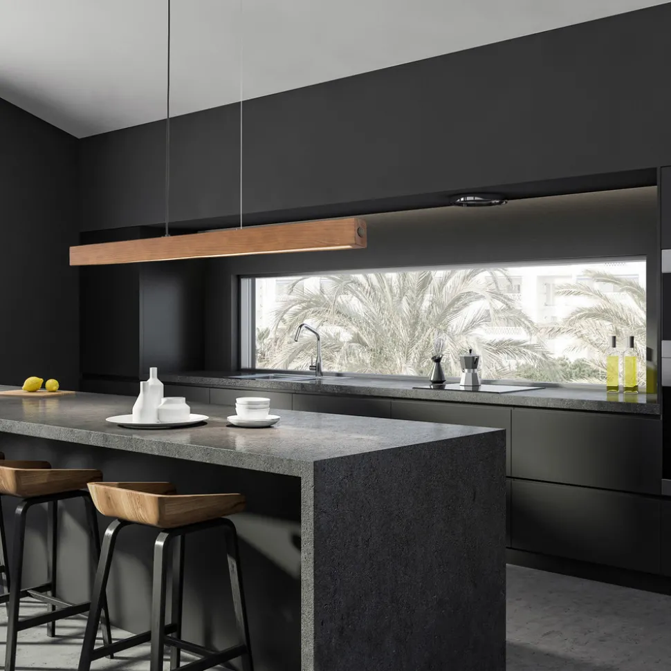 LED-trependel Teo kombinerer naturlige materialer med moderne belysningsteknologi. Den er laget av høykvalitets tre, plast og metall og skaper en varm og innbydende atmosfære i spisestuen og stuen. Den valnøttfargede overflaten harmonerer perfekt med de svarte detaljene, noe som gir et stilig design som passer perfekt inn i ulike interiørstiler. Den integrerte LED-lyskilden gir energibesparende, varmhvit lys med en fargetemperatur på 3000 K, som skaper et behagelig og avslappende miljø.