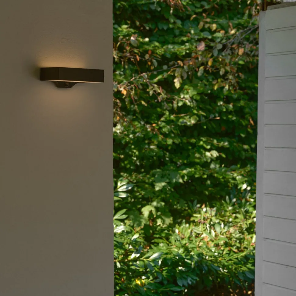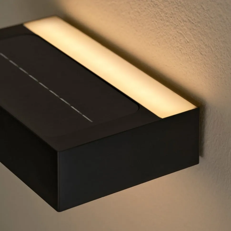 Monay er en kantet, kabelfri, solcelledrevet vegglampe i et moderne design. Batteriet i lampen lades opp av sollys om dagen, og lyset slås på når den integrerte bevegelsessensoren registrerer bevegelse om natten. Det kan velges mellom to sensorinnstillinger: av/på eller fra nattlys til fullt lys ved bevegelsesregistrering. Den utendørs vegglampen er perfekt for plassering langs fasaden eller ved inngangsdøren for å gi lys når det trengs.