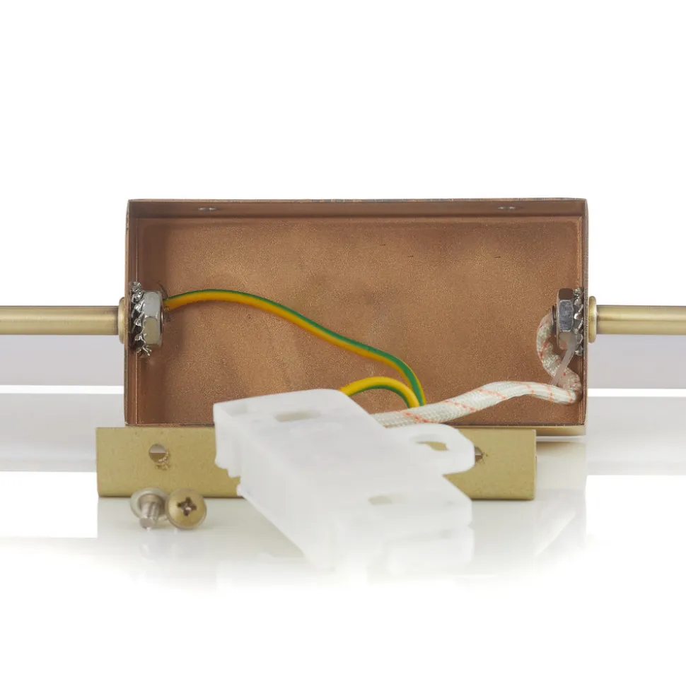 Dette Rapallo LED-vegglampe ble spesialdesignet som speil eller bildelampe . Lampen består av et langstrakt element, som er et klassisk trekk ved bildelys, fordi dette sikrer balansert og jevn belysning. Den integrerte lyskilden er energieffektive og langvarige lysdioder. Disse gir et varmt hvitt lys som skaper en koselig atmosfære. Samtidig gir lampen lys belysning takket være det høye antallet lumen. Rapallo ble holdt i en messington i sateng, som perfekt utfyller bilder av noe slag, men viser bilder med lignende fargeelementer, for eksempel i rammen eller på lerretet, spesielt godt. Rapallo er en elegant, men reservert vegglampe som fremhever bilder i alle stiler og setter dem i rampelyset. Takket være kapslingsgrad IP44 er den også egnet for fuktige rom.