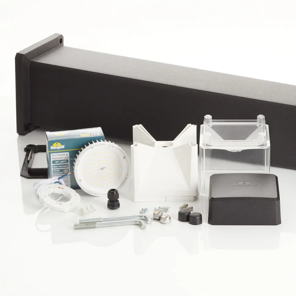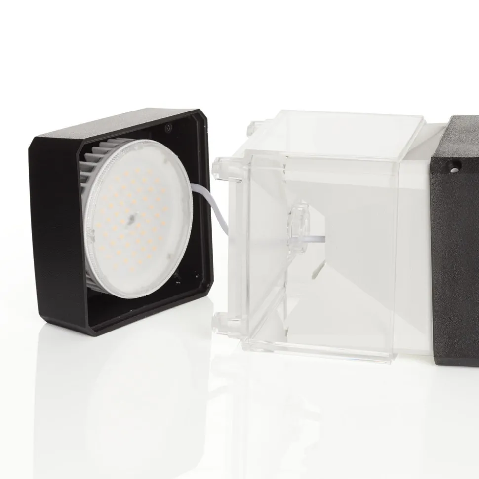 Veilampen Elisa er utformet som en pålitelig lyskilde for moderne private eiendommer eller selskapslokaler. Boligen av støpeharpiks og det klare PMMA-dekselet tåler kontinuerlige værpåvirkninger. Lys med fire strålemønster, som lages av den kvadratiske reflektoren, gir et stilfullt preg. Alt etter behov kan lyset justeres til varmhvitt, universalhvitt eller dagslys via en liten bryter på GX53 LED-pæren.