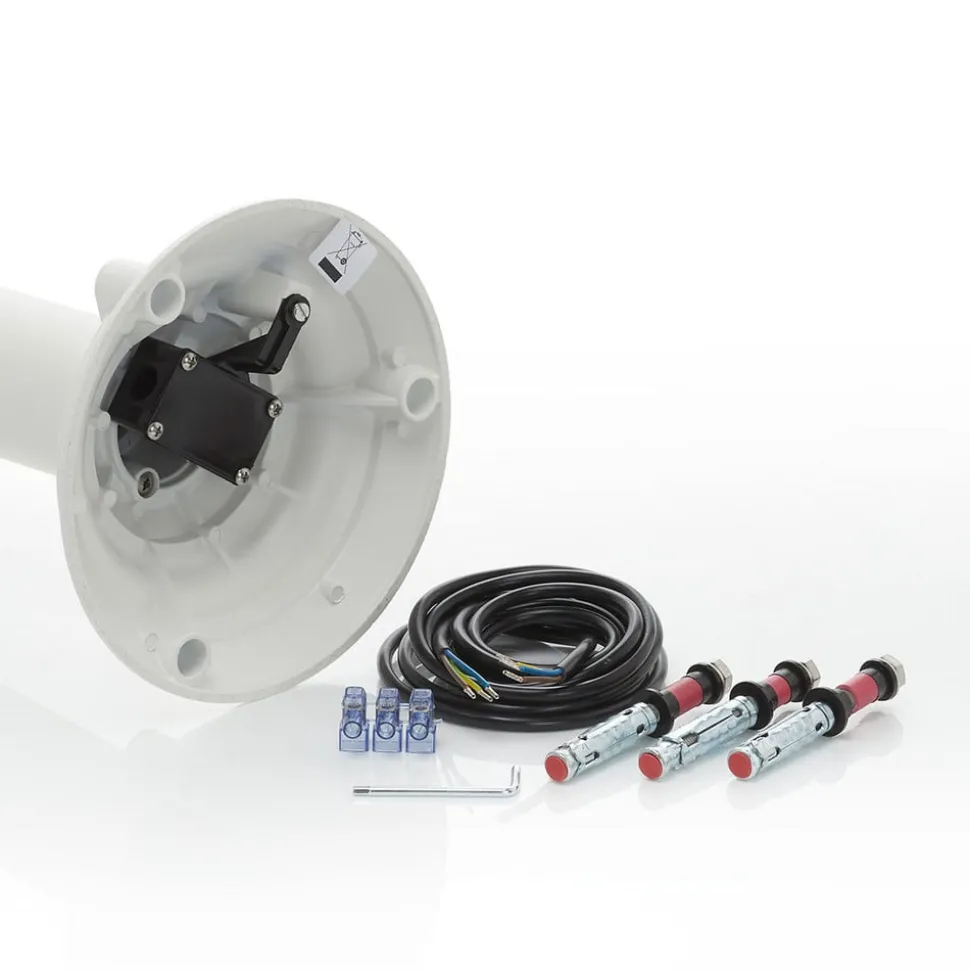 Hvit Liara stilampe – beskyttet mot saltvannskorrosjon Sjøvannsbestandighet er den viktigste egenskapen armaturer som skal brukes i nærheten av en innsjø må ha. Et kriterium som Liara stilampe i støpt aluminium (kromatert) helt klart oppfyller. Det er selvfølgelig også en fordel at den kan kombineres med mange stilvarianter takket være det moderne utseendet og den nøytrale hvite fargen. Ikke å forglemme: Med sin store skjerm av plast (polykarbonat) sprer den et sterkt lys over et stort område og gir en ideell stibelysning. Utstyrt med IP43-beskyttelse.