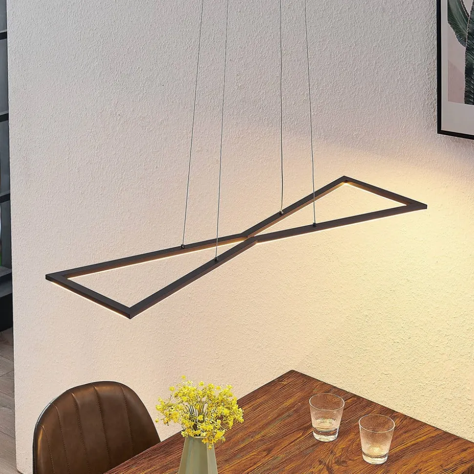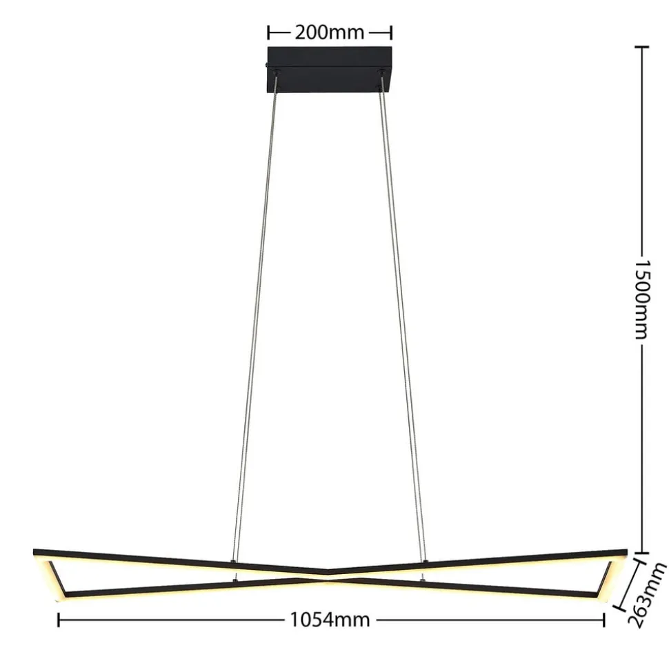 Elegant LED-hengelampe Arischa laget av stål med et romslig eksteriør