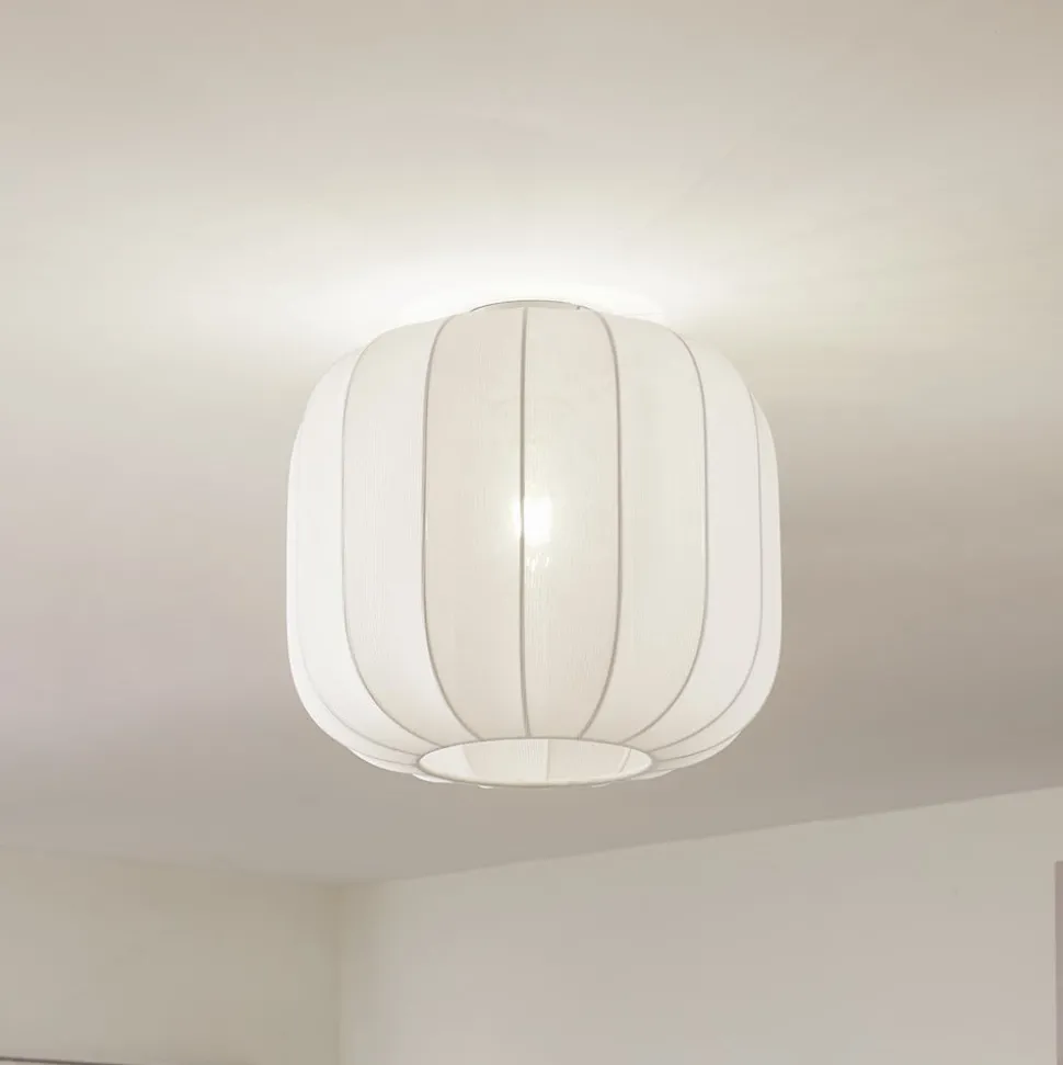Lindby Helin taklampe, hvit, stoff, Ø 35 cm