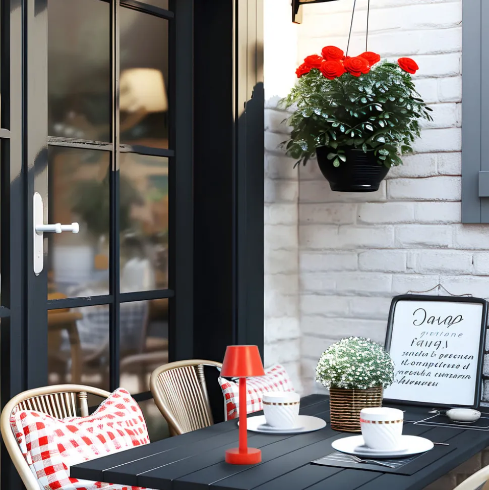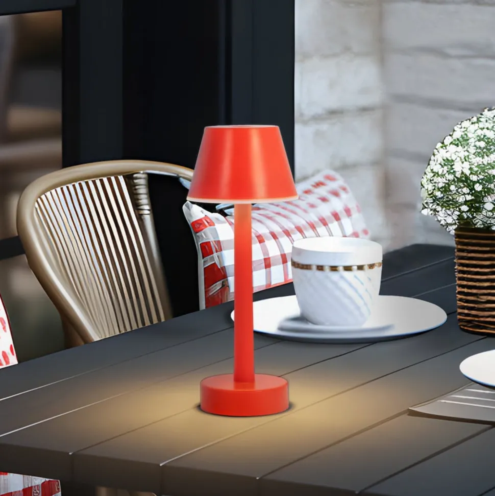 Lindby LED oppladbar lampe Gaja, rød, USB, IP44, RGBW, dimbar