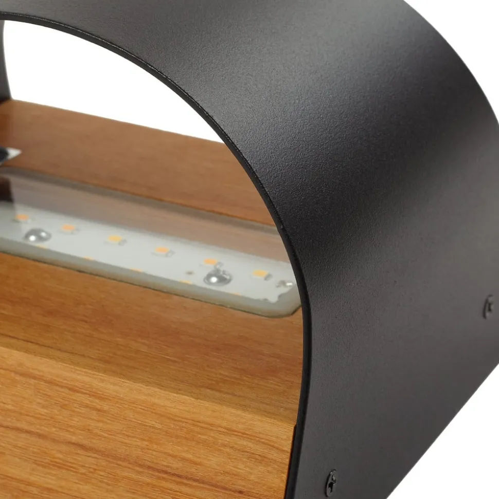 Lenore utendørs LED-vegglampe i aluminium og teak – den perfekte følgesvenn for utendørs bruk