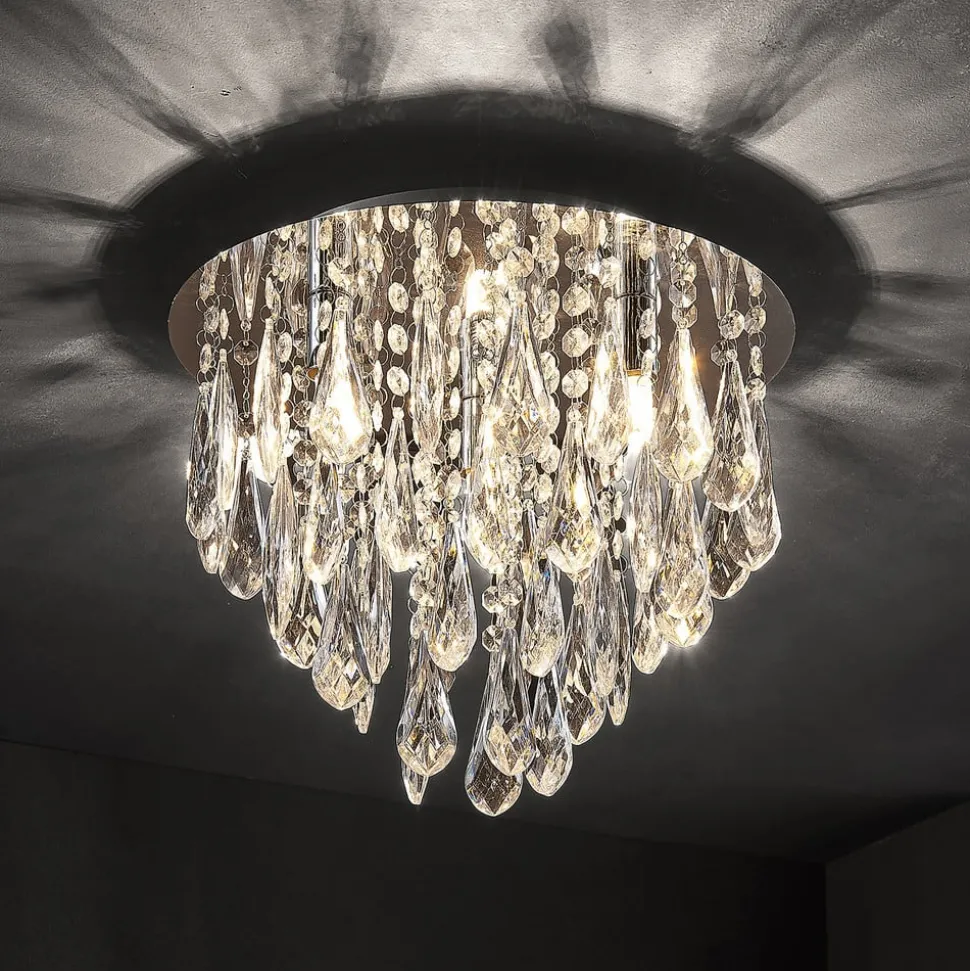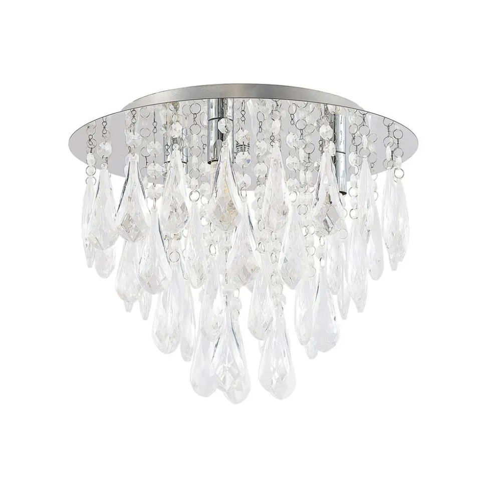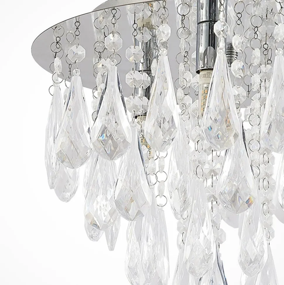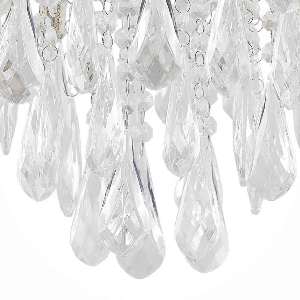 taklampe Mavinus imponerer med sine hengende elementer laget av akryl, som bryter det utsendte lyset og dermed skape svært vakre lys aksenter i rommet. Tre G9-lamper kan brukes, med lyspunktene godt skjult mellom de glitrende akrylelementene.