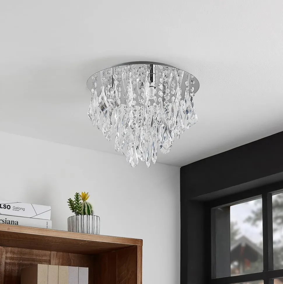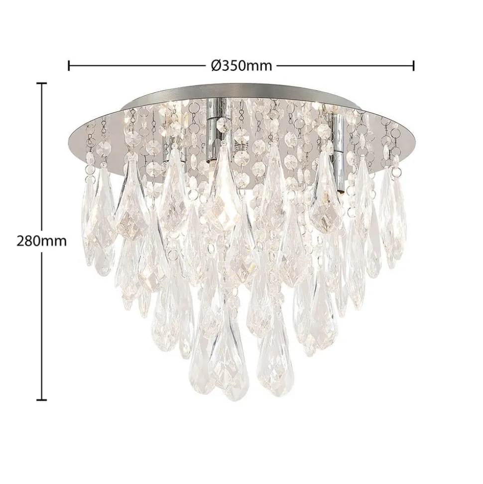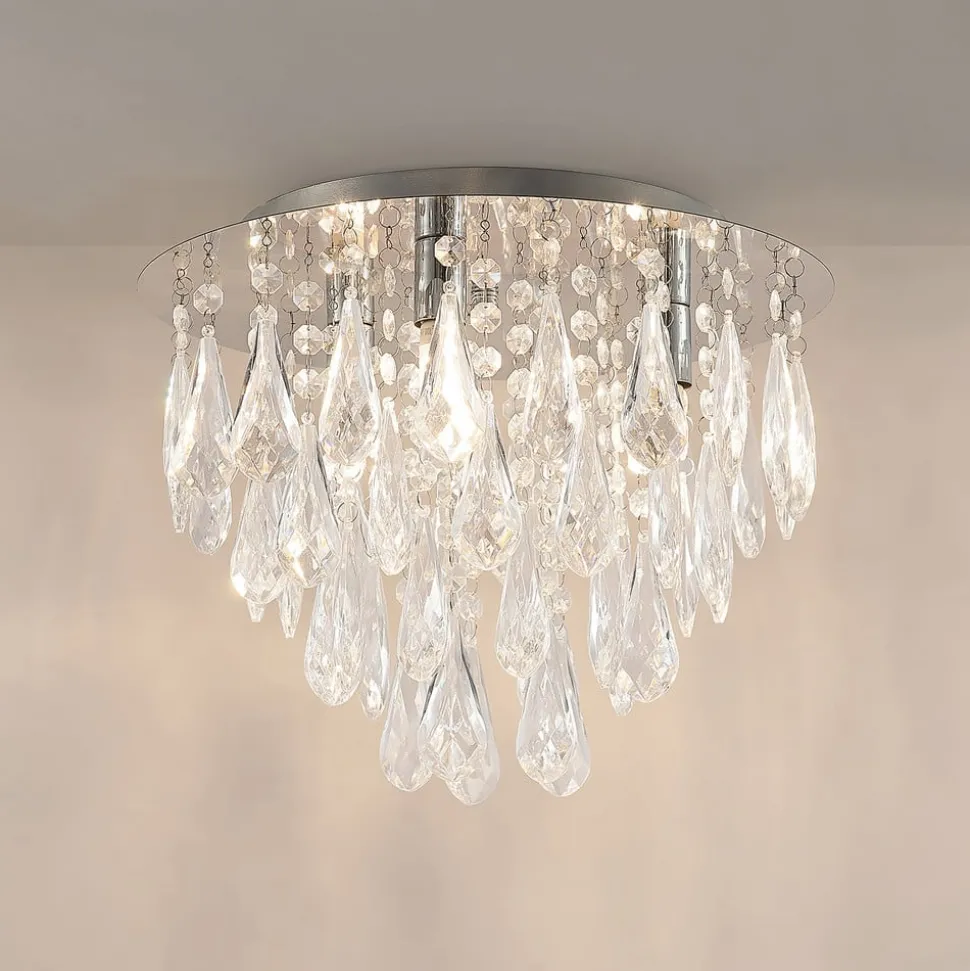 Elegant taklampe Mavinus med en feiende baldakin i krom
