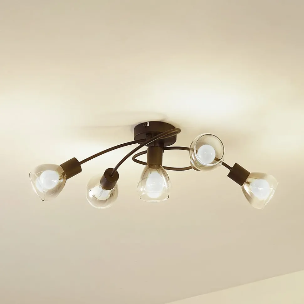 Lindby Pendura taklampe, 5 lyskilder, svart, glass