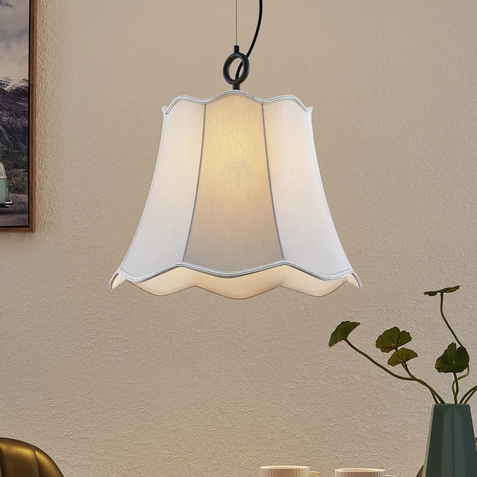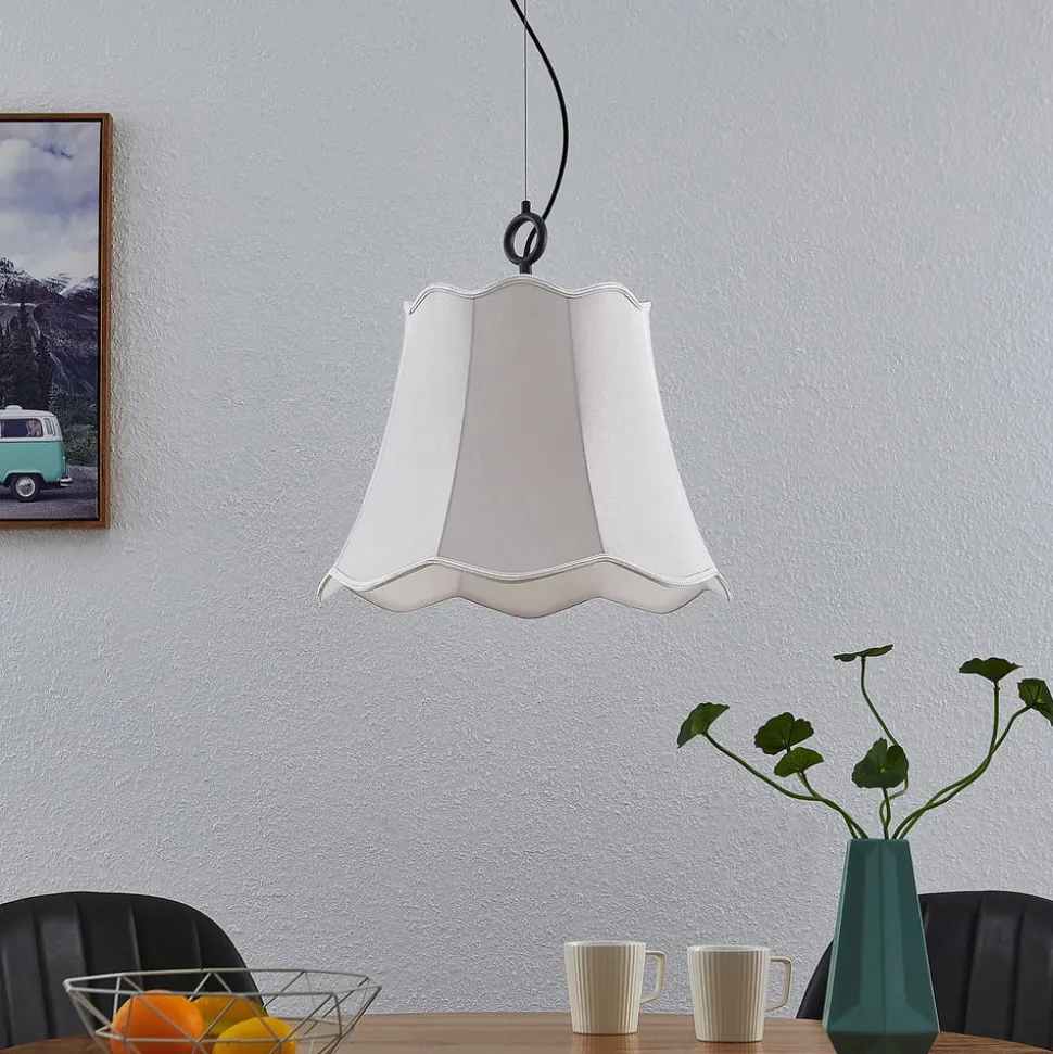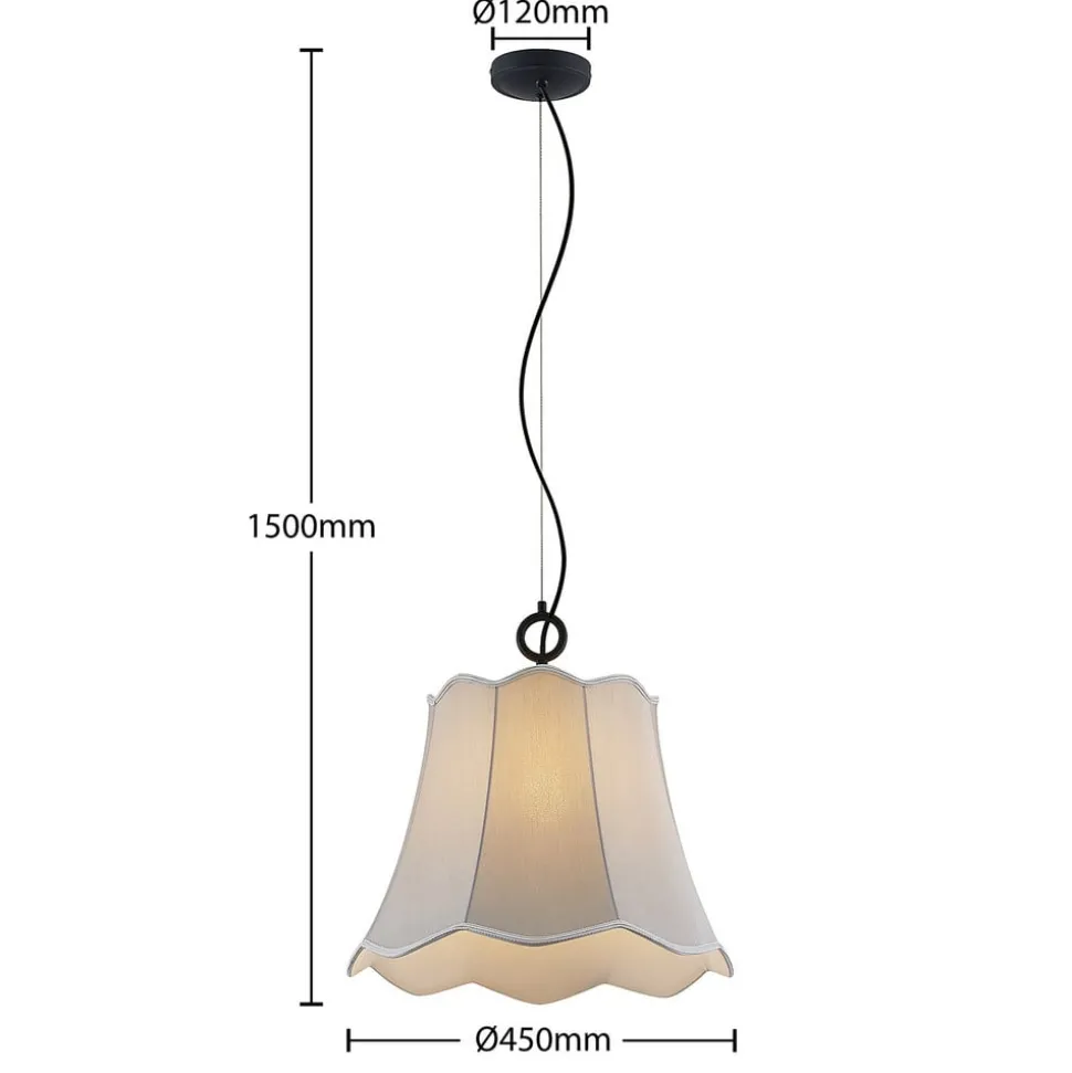 Sølvgrå Binta stoff hengelampe med bølget ende og eksklusivt design