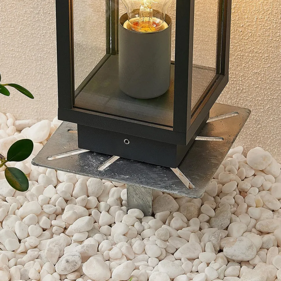Cadis jordspyd som supplement til moderne veilamper Cadis jordspyd kan festes til veilampene for å forankre dem sikkert i bakken. Fire skruer, fjærskiver og muttere følger med for sikker montering.