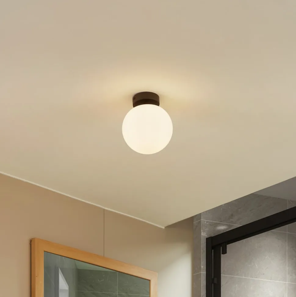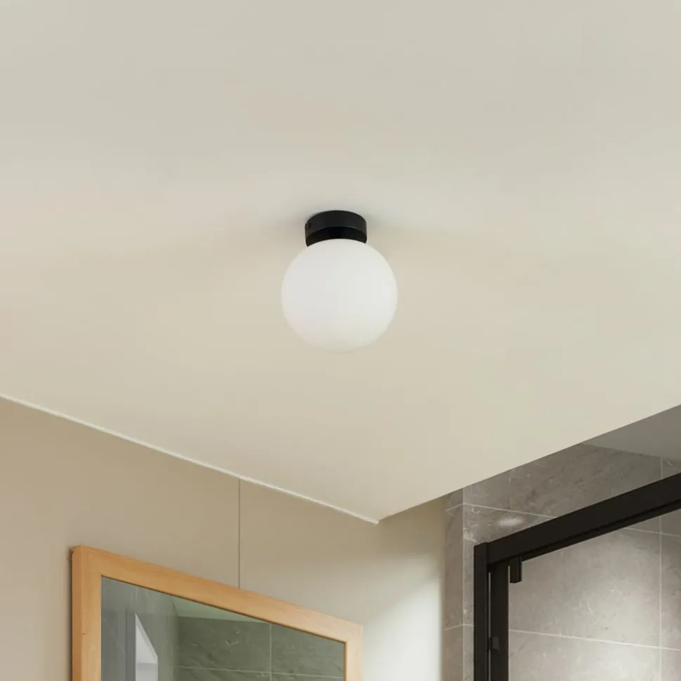 Bidolo sfærisk taklampe i glass til baderommet Bidolo taklampe er et virkelig blikkfang i ethvert rom. Taklampen er perfekt for baderommet (kapslingsgrad IP44) og gir en behagelig belysning. Den kan dimmes (avhengig av lyskilden), men en dimmer (ekstern veggdimmer) er ikke inkludert. Den tiltalende designen gjør Bidolo taklampe til et must-have for alle som er ute etter stilfull belysning.