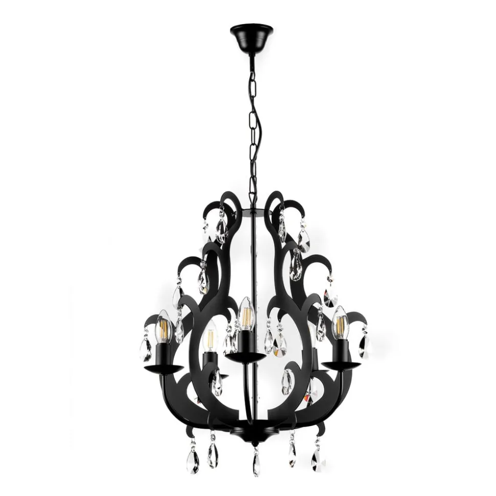 Lysekrone Jane i høykvalitets metall i elegant svart kombinerer tidløs eleganse med moderne allsidighet. Med sine fem lysarmer og glitrende krystalelementer setter den imponerende aksenter i ethvert rom. Enten i stuen, soverommet eller spisestuen – denne lysekronen gir ethvert miljø et spesielt preg. Den europeisk produserte lampen overbeviser med sin høykvalitets utførelse og det elegante designet.