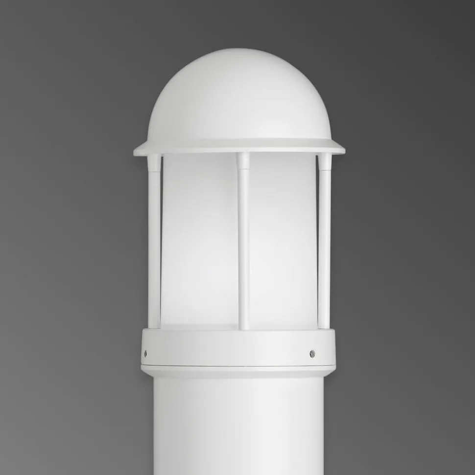 Den postformede Marco-stilampen med avrundet hode har et tidløst moderne og litt maritimt utseende. Den opalhvite polykarbonatskjermen lar lyset slippe ut i alle retninger, mens hodet sikrer frihet fra gjenskinn. Fot- og hodedekselet til stilyset, som har IP44-beskyttelse, er laget av støpt aluminium og er ekstremt slitesterke.