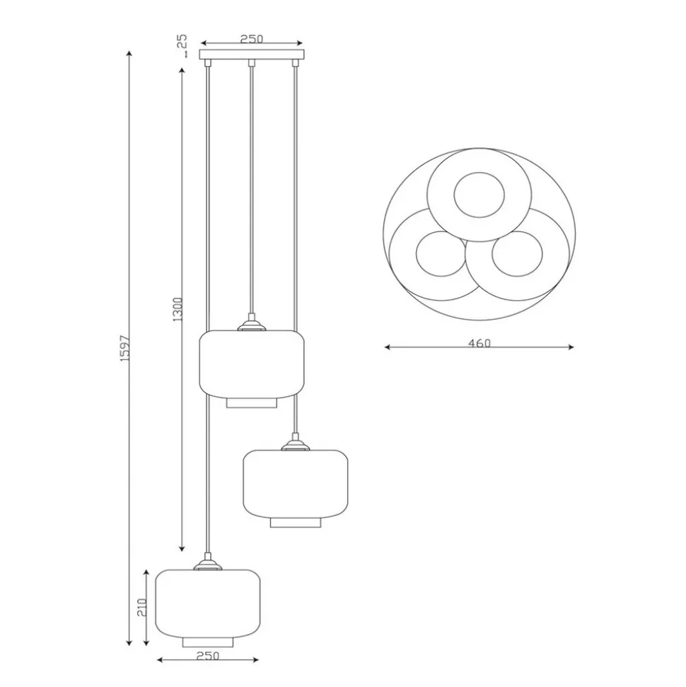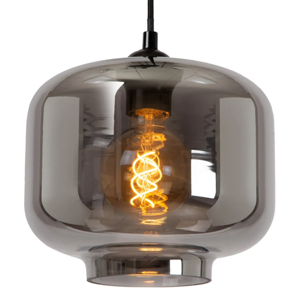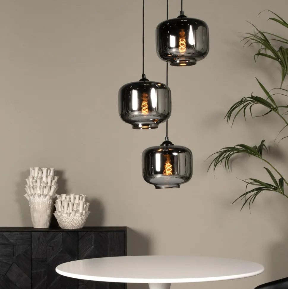 Medine pendellampe, røykgrå, Ø 46 cm, glass, 3 lyskilder