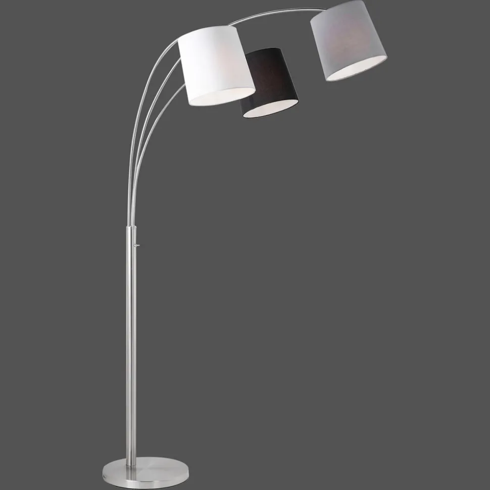 Bueformet gulvlampe Melvin med tre forskjellige fargede stofffarger