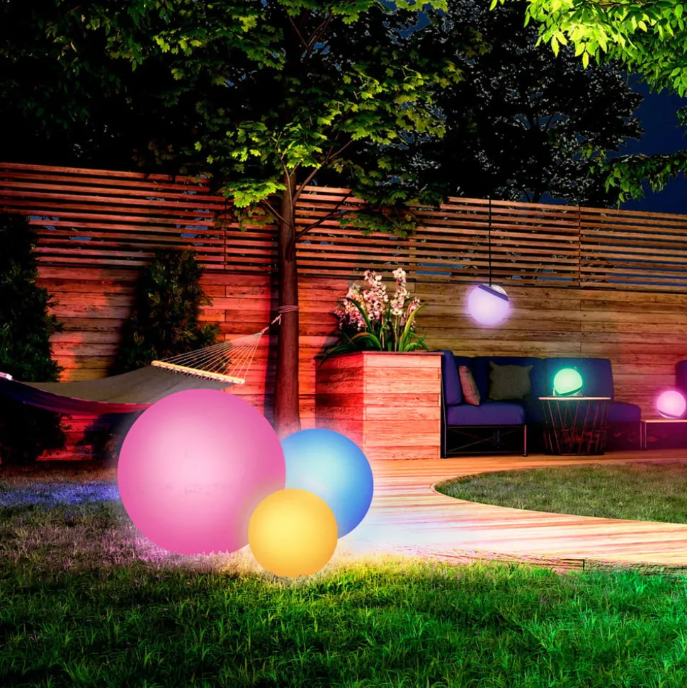 LED-dekorasjonslys Calluna Solar med RGB-fargeskift og justerbar fargetemperaturLED-globen Calluna Solar er laget av robust plast og har IP44-beskyttelse. Dette gjør den ideell for utendørs bruk. Takket være den innebygde solcellemodulen kan den plasseres fleksibelt og for eksempel gi inngangspartiet, hagen eller terrassen lysstyrke. Alternativt er det også mulig å lade lampen via en USB-C-kabel (ikke inkludert). Det smarte LED-solcellelyset har en fargetone-modul som gjør det mulig å velge en rekke funksjoner. For eksempel kan den styres via en fargetone-fjernkontroll (ikke inkludert, tilgjengelig som tilbehør), via stemmestyring med Amazon Alexa eller via et Zigbee-basert smarthus-system via app. For eksempel kan fargetemperaturen varieres fra varmt til dagslyshvitt, og lysstyrken kan reguleres. I tillegg er det mulig å velge mellom 16 millioner forskjellige farger for å skape optimale lysforhold avhengig av situasjonen. Funksjoner/kompatibilitet:- kontrollerbar via en passende fargetone fjernkontroll (se tilbehør)- kontrollerbar via app etter integrering i et Zigbee-basert smarthome-system (for eksempel Philips Hue, Magenta SmartHome eller Samsung SmartThings)- kompatibel med stemmeassistenten Alexa (Amazon)- beskyttelsesklasse: IP44- fri plassering i hagen takket være innovativ solteknologi (valgfritt oppladbar via USB-C-kabel (ikke inkludert))- dimbar- lysfarge fra varmhvit (1.800 K) til dagslys (6500 K)- farget lys (RGB-fargeendringsfunksjon)