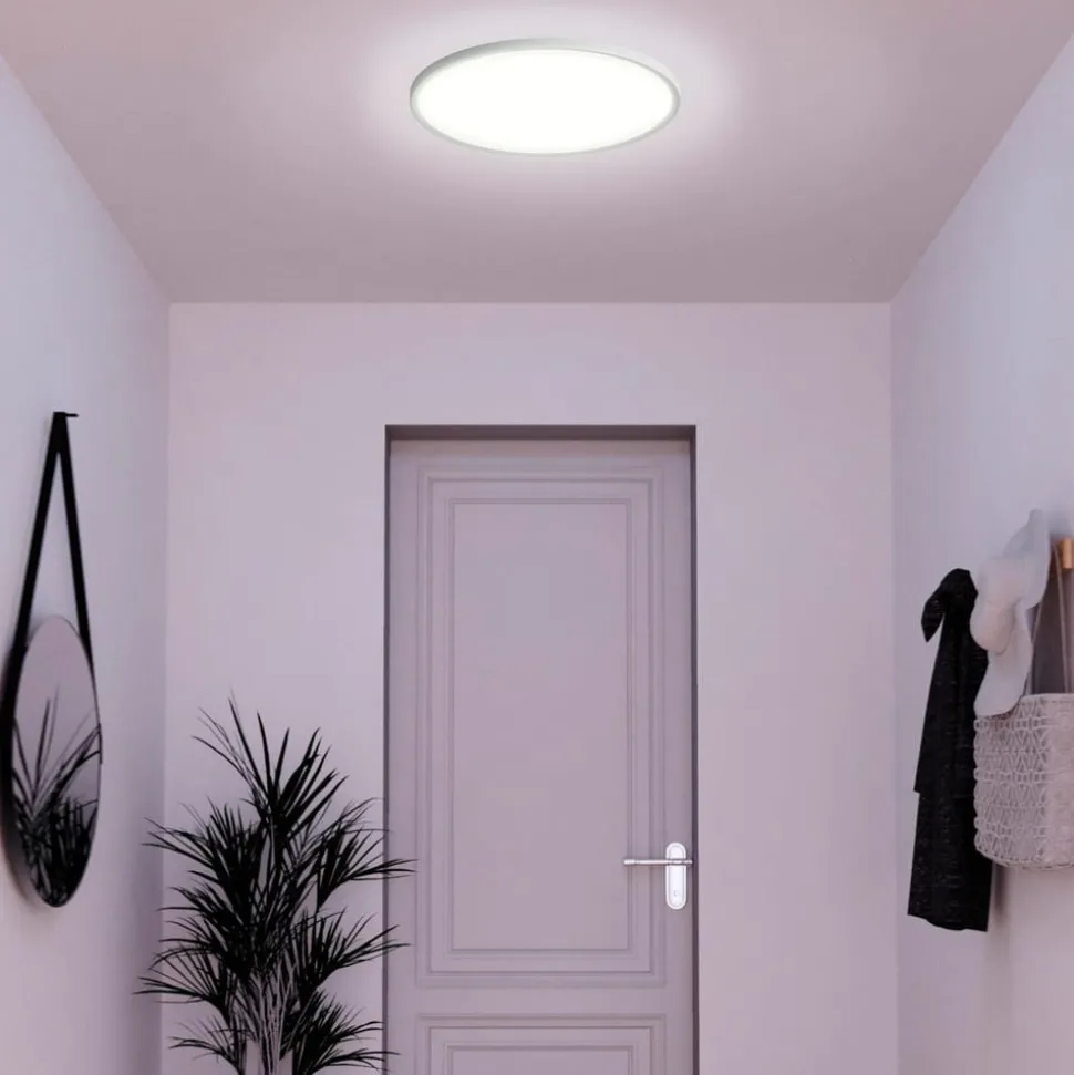 Smart styrbar Amela LED-taklampe med CCT og dimmefunksjonOm det er i stuen, på soverommet eller på kontoret – Amela LED-taklampe passer lett inn i nesten ethvert miljø takket være den slanke designen og det tidløse fargevalget. Lyset forsyner hovedsakelig området under armaturen med lysstyrke, men skinner også bakover og skaper en vakker indirekte lyseffekt. Alternativt er det også mulig å montere Amela som en veggarmatur.LED-armaturen har mange funksjoner, for eksempel er det mulig å regulere lysstyrken på taklampen kontinuerlig og å variere fargetemperaturen fra varm til dagslyshvit. På denne måten kan de riktige lysforholdene skapes for enhver situasjon på kort tid. I tillegg kan eksisterende lysscenarier aktiveres eller lysgrupper settes sammen. Styringen skjer enten via tint-fjernkontrollen (ikke inkludert), via app ved hjelp av et Zigbee-basert smarthussystem, via talekommando eller via Bluetooth ved hjelp av tint Smart Light-appen.Funksjoner/kompatibilitet:- kan styres via en egnet tint-fjernkontroll (se tilbehør)- kan styres via app etter integrering i et Zigbee-basert smarthome-system (for eksempel Philips Hue, Magenta SmartHome eller Samsung SmartThings)- kompatibel med stemmeassistenten Alexa (Amazon)- kan styres via tint Smart Light-appen via Bluetooth uten ekstra enheter- dimbar- lysfarge fra varmhvit (1800 K) til dagslys (6500 K)- kan monteres som tak- eller vegglampe