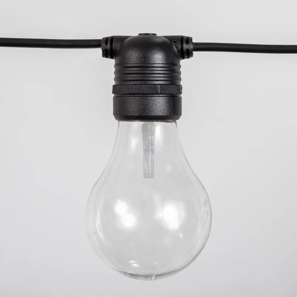 LED-lyskjede Allegra med 10 lamper og fjernkontroll Den svarte lyskjeden Allegra er utstyrt med 10 klare lamper i retrodesign som kan lyse i varmhvitt lys med 3000 K eller i farget lys. Den robuste lyskjeden i plast leveres med en fjernkontroll. Fjernkontrollen kan brukes til å stille om lyset til fargeskiftende lys eller fire ulike lysinnstillinger – Total lengde 8 meter – Kabellengde til første stikkontakt 3,25 meter – Avstand mellom stikkontaktene 5 cm