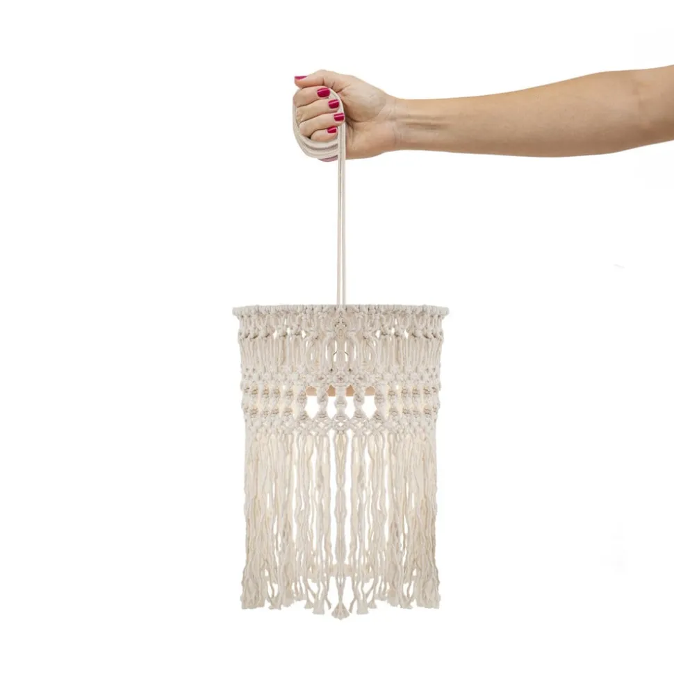 Oppladbar Mykonos LED-pendellampe for utendørs bruk Mykonos LED-pendellampe er perfekt for uteplasser, balkonger og hager. Takket være den 3 meter lange kabelen kan den enkelt henges opp hvor som helst. Inne i den heklede bomullsskjermen er det et oppladbart batterilys som kan lades ved hjelp av en USB-C-kabel (kabel medfølger, strømadapter medfølger ikke). Den kan dimmes ved hjelp av den medfølgende fjernkontrollen – IP54 – Ladetid 4-6 timer – Belysningstid: 20 timer