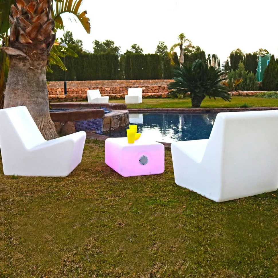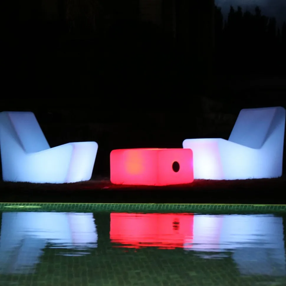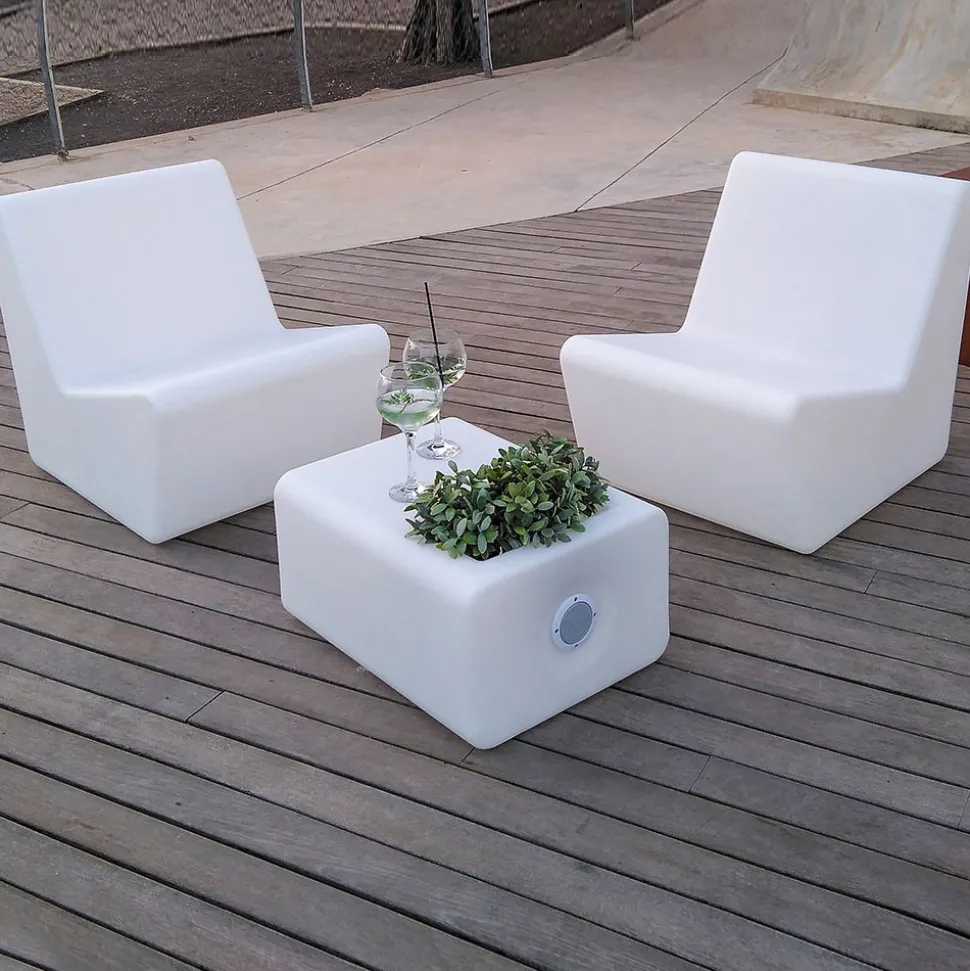 Tarida Sit – lysende lenestol i plast med pute Den lysende lenestolen Tarida Sit er enkel og moderne, og er laget av slitesterk og UV-bestandig polyetylen. Dette materialet brukes av produsenten Newgarden i nesten alle sine produkter. Det er lett, robust og tåler både ekstreme temperaturer og UV-stråling. Stolen inneholder et solcellepanel og et oppladbart batteri. Solcellepanelet lader batteriet i sollys, som igjen lyser opp de integrerte lysdiodene (RGB og hvitt) i opptil 36 timer om kvelden. Det følger med en 1,5 meter lang ladekabel for lading fra strømnettet, slik at lyset kan stå på lenge nok om kvelden selv på dager med lite sollys. Lysinnstillingene kan enkelt justeres med den medfølgende fjernkontrollen. Stolen er ideell for enhver hage eller uteplass, ethvert utendørs-, innendørs- eller forretningsområde – Oppladbart batteri 1 x 2 000 mAh litium – Lysvarighet opptil 36 timer avhengig av lysinnstilling – Ladetid 4 til 6 timer – Inkluderer 1,5 m ladekabel og IR-fjernkontroll