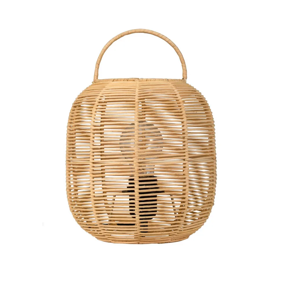 Boho Glow bordlampe i naturlig boligstil Bordlampen Boho Glow har en lykteformet kropp laget av rotting og utstråler derfor mye hygge – helt i tråd med den naturlige boligstilen. Når den er slått på, dannes det et vakkert lys- og skyggemønster rundt lampen når lyset faller gjennom sprekkene i rottingskjermen. inkl. av/på-bryter