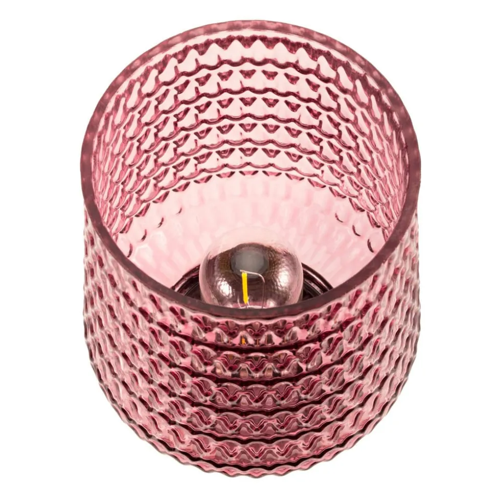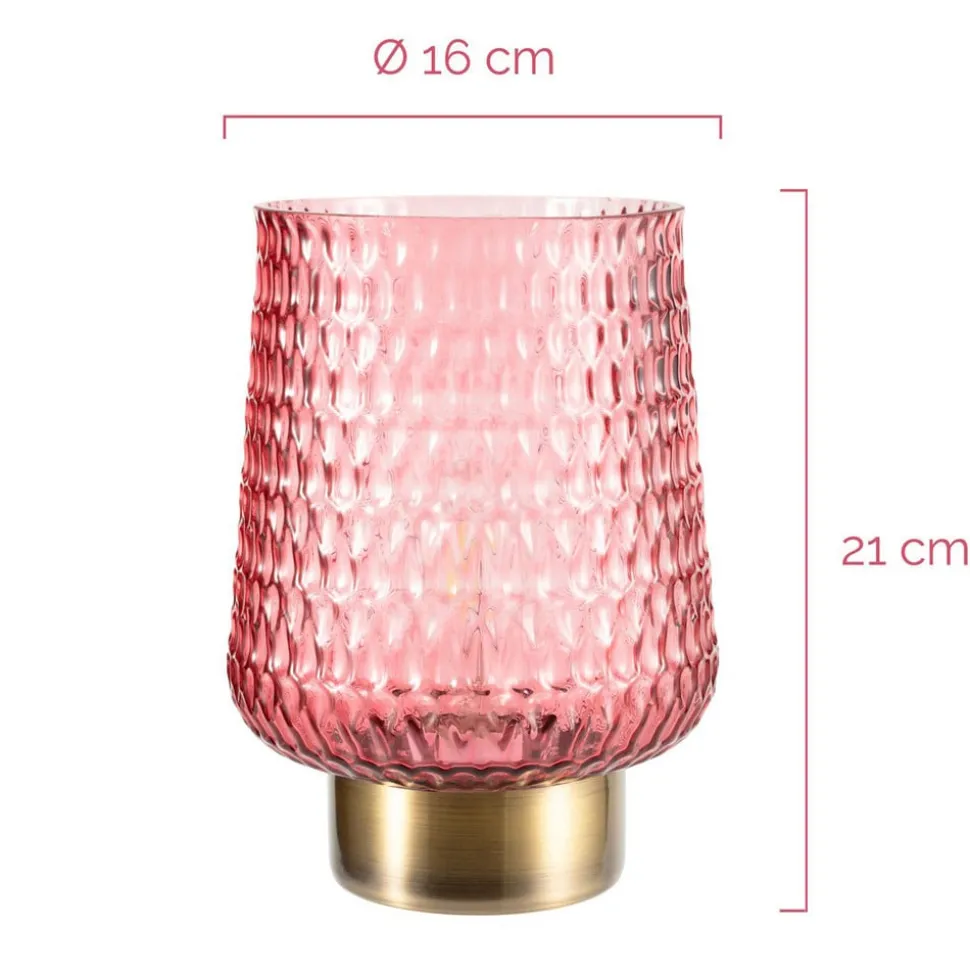 Batteridrevet LED-bordlampe Rose Glamour med glasskjermBordlampen Rose Glamour gir et behagelig lys i stuen eller på soverommet med sitt estetiske glass i rosé matt. Glassets stilige struktur gjør denne bordlampen til et spesielt dekorativt høydepunkt. Plassert harmonisk i en hvilken som helst stue skaper den en fantastisk lysatmosfære. Batteridriften gjør at du kan plassere den mobile bordlampen hvor som helst og om og om igjen – uavhengig av om det er strøm i nærheten. Den 6-timers timeren slår av bordlampen automatisk. Vårt tips: På større bord, f.eks. spisebordet, gjør flere av disse lampene seg best ved siden av hverandre. Merk: Vær oppmerksom på at det ikke følger med batterier (3 x AA) – ikke egnet for vanlige E27-pærer