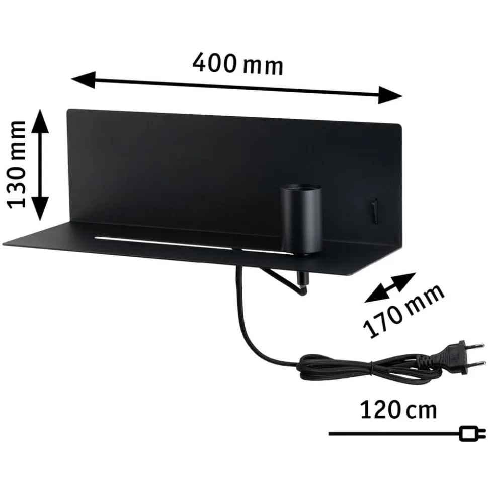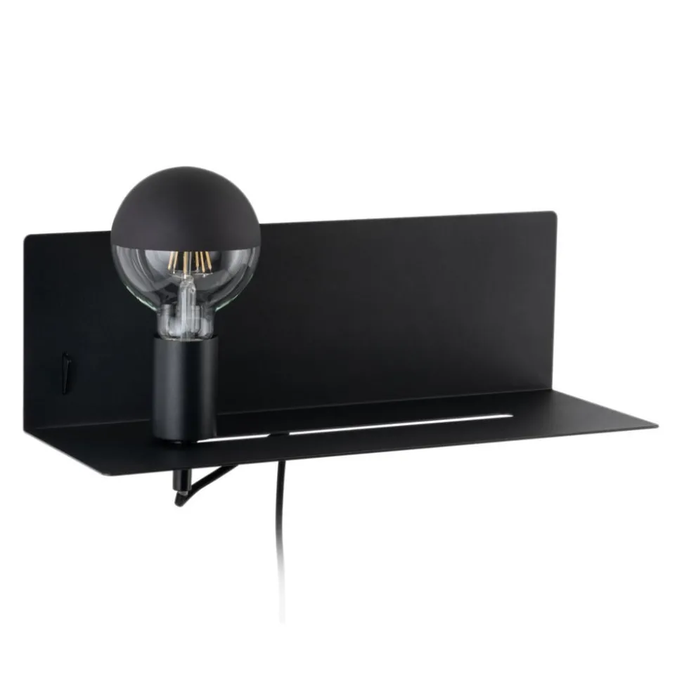 vegglampe Devara med praktisk hylle, kabel og plugg