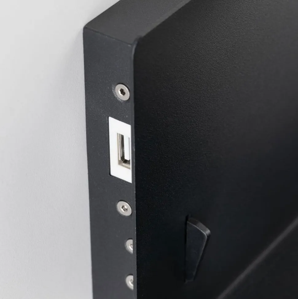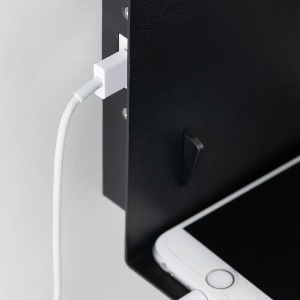 Som en praktisk ekstra har Devara- vegglampe en USB-port som for eksempel kan brukes til å lade en smarttelefon. I tillegg er en bryter integrert i veggbraketten, som lyset enkelt kan betjenes med. Ved hjelp av støpselet kan Devara enkelt kobles til en stikkontakt i nærheten.