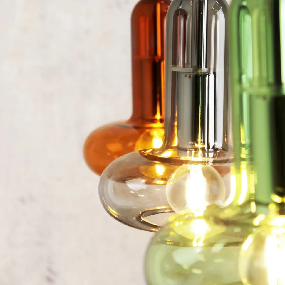 Perseus pendellampe, fargerik, lengde 65 cm, 3-lys, glass