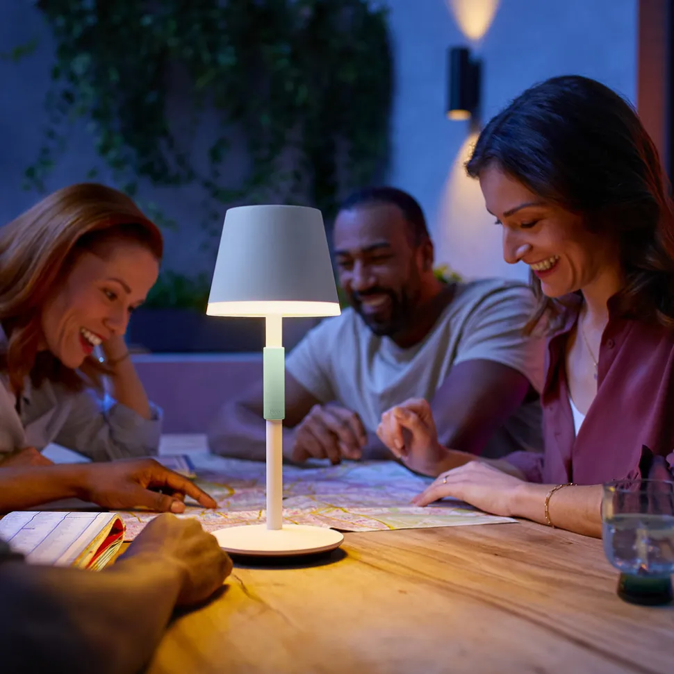 Stilig LED-bordlampe Philips Hue White and Color Ambiance Go med oppladbart batteri – for innendørs og utendørs