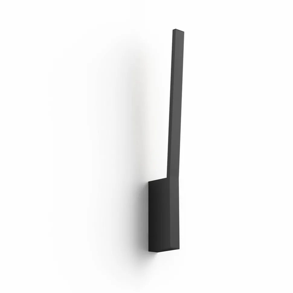 Smart betjening, enkelt design, varierte lysmuligheter – Liane er en gjennommoderne vegglampe. Den høye, rektangulære stangen er utstyrt på baksiden med en White and Color Ambiance LED-stripe. Dette gir en aksent på veggen og indirekte belysning – valgfritt i varmhvitt til dagslys eller farget lys.