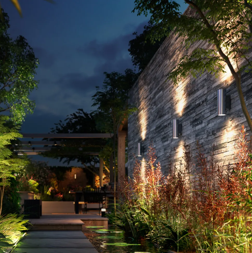 Smarte opp-og-ned-utendørs vegglampe Philips Hue White and Color Ambiance Appear som sylinder i stål