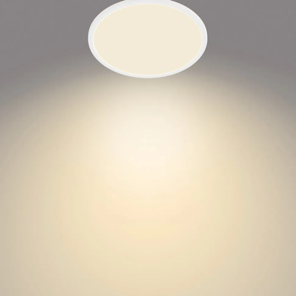 LED-taklampe Superslim IP44, dimbar via lysbryterSuperslim er en rund LED-taklampe fra Philips som er egnet for bruk på badet og andre fuktige rom takket være IP44-beskyttelse. De installerte varmhvite lysdiodene kan dimmes uten dimmer via lysbryteren. Ved å bytte flere ganger kan du velge mellom 100 %, 50 % eller 10 % lysstyrke. Armaturen oppfyller EyeComfort-kriteriene utviklet av Philips og gir behagelig lys som er skånsomt for øynene – også egnet for veggmontering – med minnefunksjon