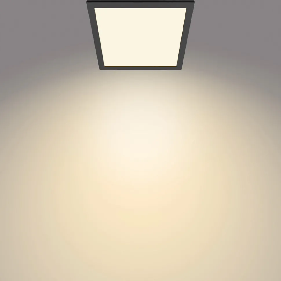 LED-panel Touch med svart ramme og scenebryterfunksjonDette LED-panelet i veldig flat design, firkantet form og med en smal, svart ramme av metall avgir varm hvit belysning som kan kobles til tre lysstyrkenivåer via lysbryteren. Ved å bytte flere ganger kan lysstyrken til lysdiodene som er installert i armaturen, byttes til lysstyrkenivåer på 100 %, 50 % eller 10 %.