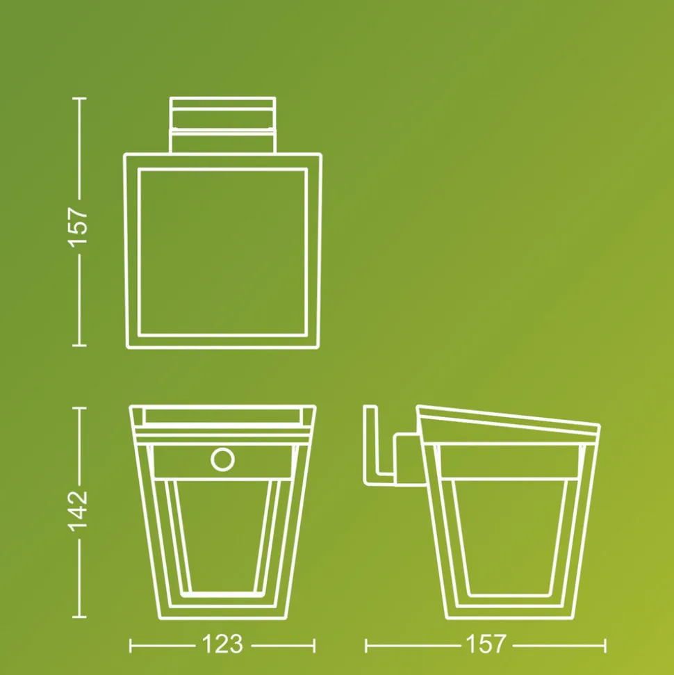 Nissa er en solcelledrevet utendørs LED-vegglampe i plast, utstyrt med dagslys- og bevegelsessensor, slik at belysningen kun aktiveres når det er behov for det.