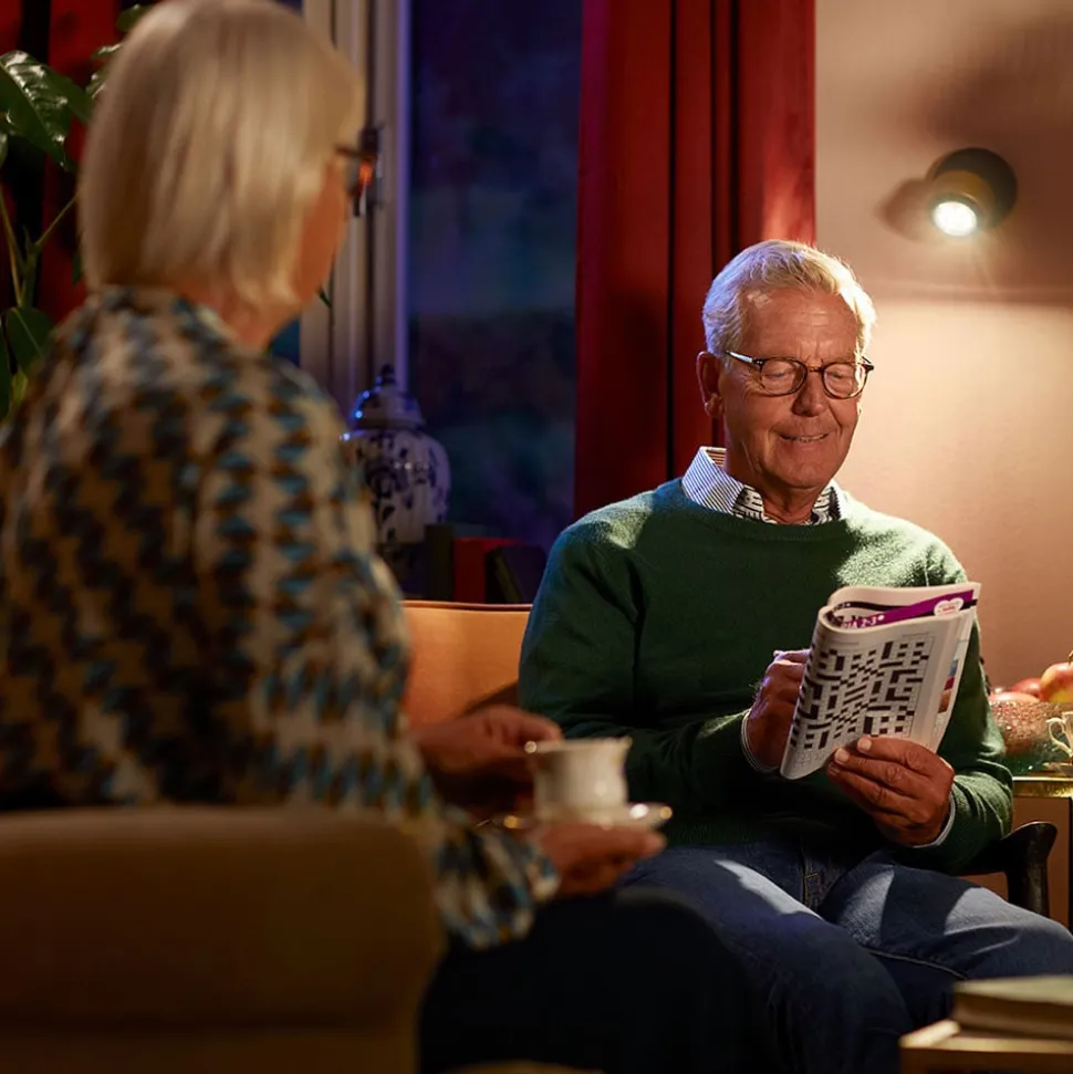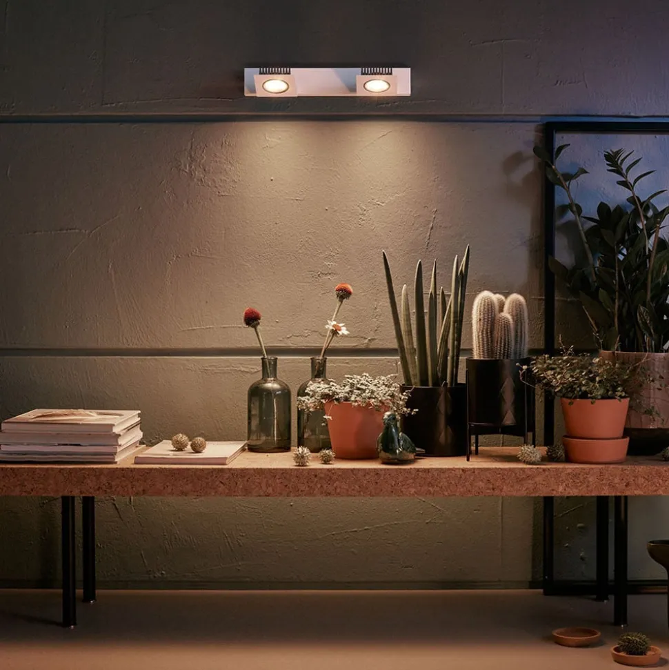 GU5.3 5W LED-reflektorpære med flott varm glødeffekt – fra Philips Denne LED-pæren er ikke bare dimbar, noe som i seg selv kan gi flotte lysaksenter, men den endrer også lysfargen fra 2700 Kelvin til ekstra varme 2200 Kelvin når den dimmer, noe som skaper en koselig atmosfære i hjemmet. Denne lyskilden oppfyller EyeComfort-kriteriene som er utviklet av Philips. Den gir et lys som er skånsomt for øynene.